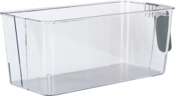 Ovaj izdržljiv i čvrst organizator od prozirne plastike sa sivom silikonskom ručkom idealan je za pregledno odlaganje voća, povrća i ostalih namirnica u hladnjaku, smočnici ili na policama. Prozirne stijene osiguravaju trenutačan pregled sadržaja, a žljebljeno dno pomaže smanjiti klizanje i vlagu.