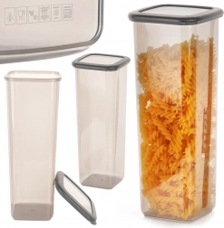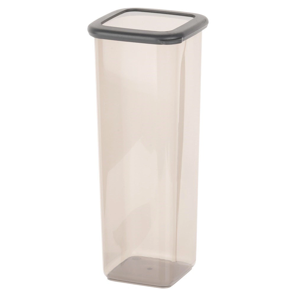 Organizirajte svoju smočnicu pametno i stylish. Visoki spremnik dimenzija 11 × 11 × 28 cm prima do 2 litre rasutih namirnica te zahvaljujući čvrstom, dobro prianjajućem poklopcu pomaže očuvati svježinu i aromu. Prozirno tijelo u sivom tonu osigurava da uvijek odmah vidite koliko zaliha je preostalo.