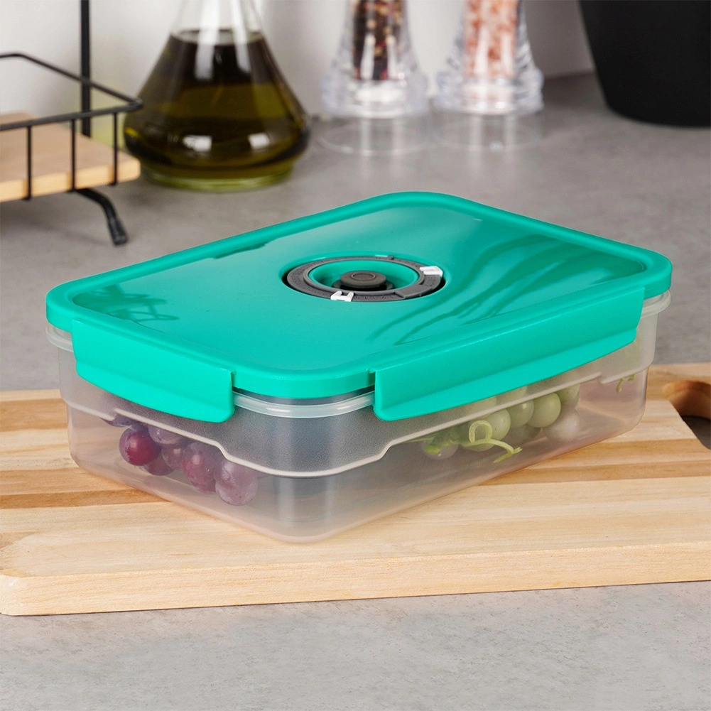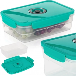 Vakuumska kutija 1,2 l idealna je za pohranu voća, povrća, ostataka jela i užina. Poseban ventil na poklopcu omogućuje lako izvlačenje zraka ručnom pumpicom, čime produljuje svježinu i okus pohranjenih namirnica. Prozirno tijelo olakšava pregled sadržaja, a kompaktan oblik štedi prostor u hladnjaku.