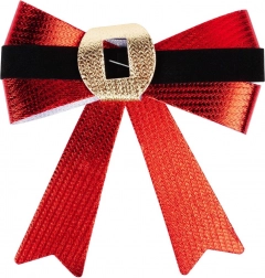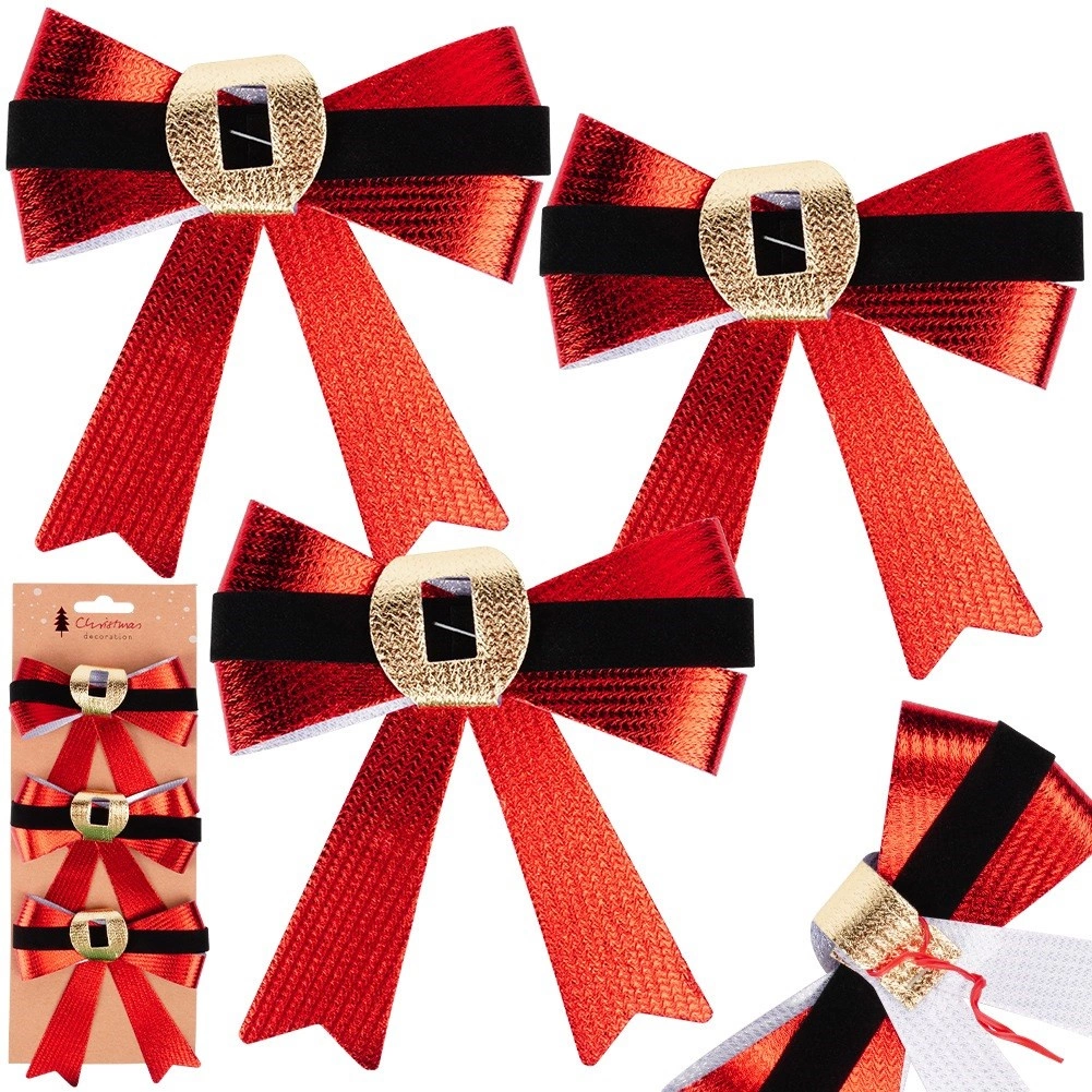 Unesite u dom čaroliju Božića s ovim setom od 3 dekorativne mašne. Crveni metalik sjaj, kontrastni baršunasto crni remen i zlatni akcent nalik kopči djeluju elegantno i savršeno se uklapaju u klasične i moderne dekoracije.