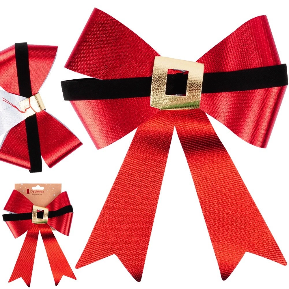 Dodajte svojim Božićima upečatljiv akcent ovom efektnom mašnom u elegantnoj crvenoj izvedbi. Crni baršunasti remen sa zlatnom kopčom stvara ikoničan blagdanski izgled i istaknut će svaki bor, vijenac i ulazna vrata. Zahvaljujući maloj težini i priloženoj žici, mašnu lako i brzo pričvrstite gotovo bilo gdje.