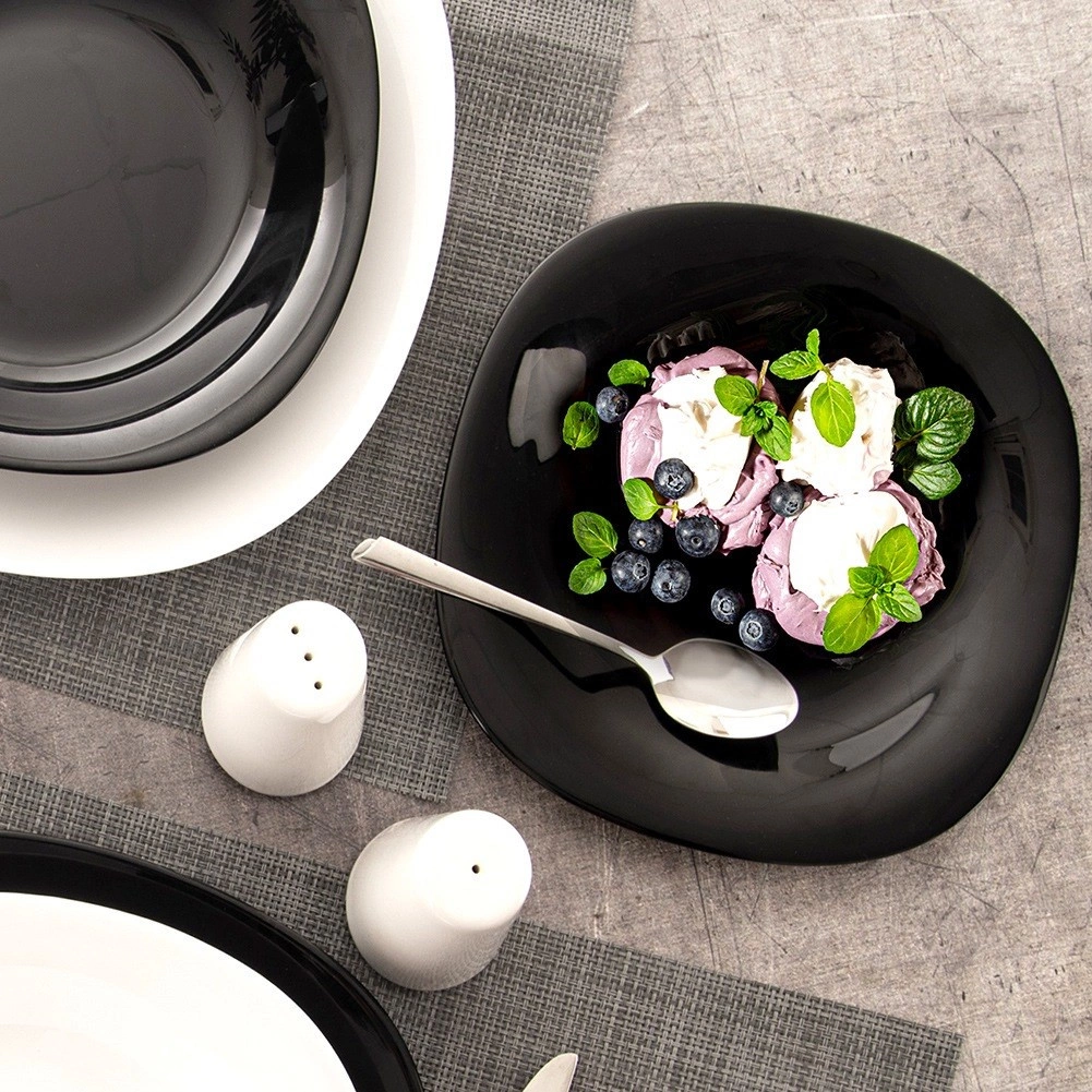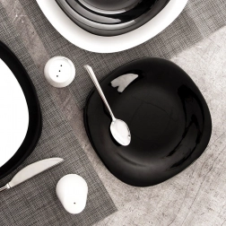 Kreirajte stilski postavljen stol s crnim desertnim tanjurom LUNA. Kvalitetno opalno staklo izgledom podsjeća na porculan, otporno je pri svakodnevnoj upotrebi i lako se održava. Minimalističan, ali izražajan dizajn istaknut će posluživanje torti, pita, deserata i sitnih zalogaja.