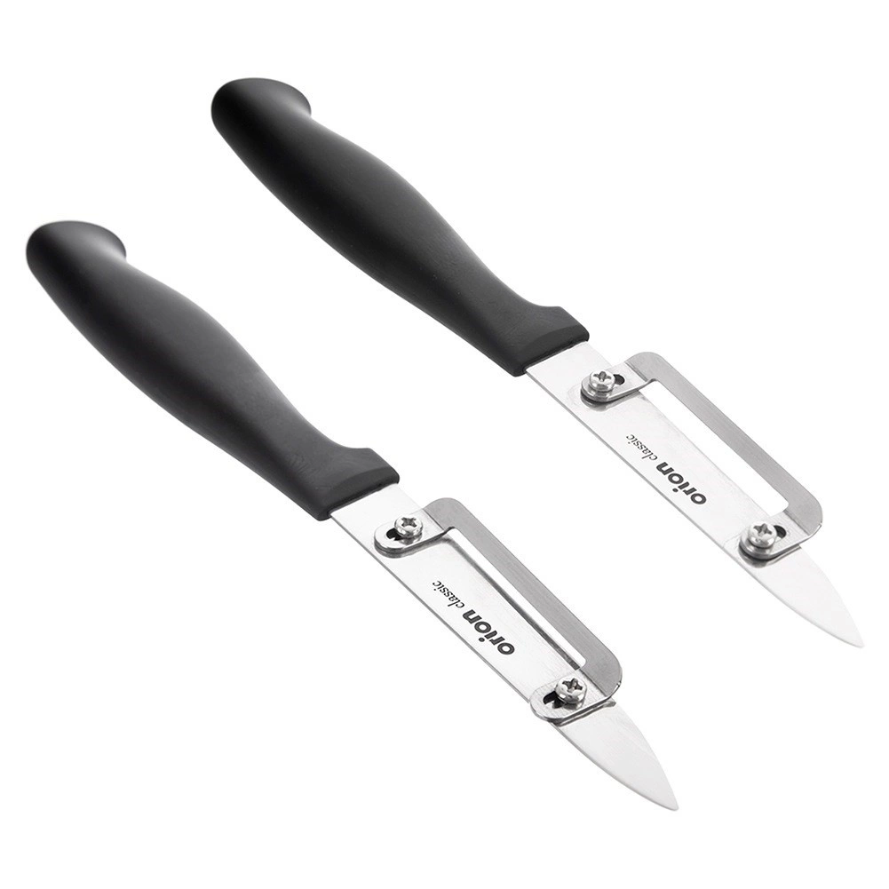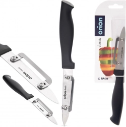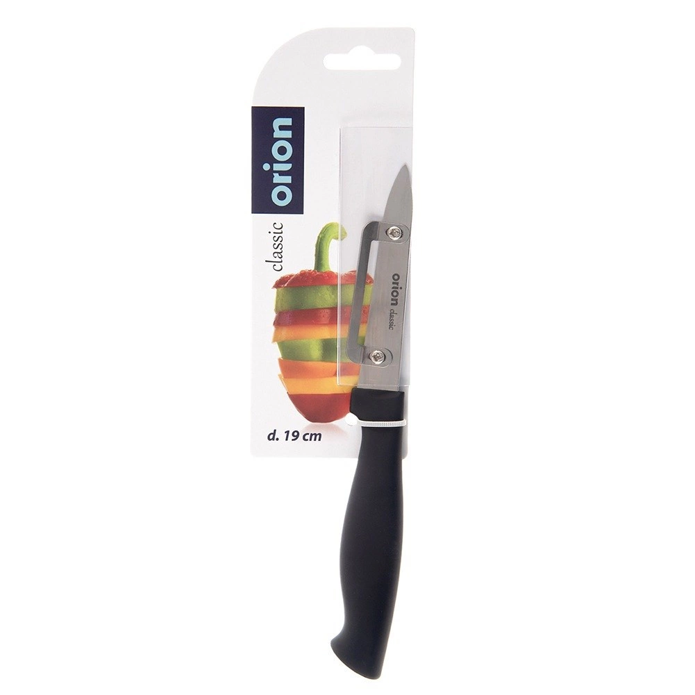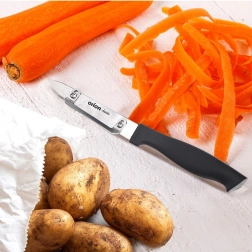Univerzalan nož za voće i povrće s praktično integriranim vertikalnim strugalom izravno na oštrici. Zahvaljujući kompaktnim dimenzijama i oštrom rezu omogućuje brzo i sigurno guljenje te fino rezanje manjih namirnica. Konstrukcija s vijcima omogućuje podešavanje dubine zahvata ili potpuno uklanjanje strugala.