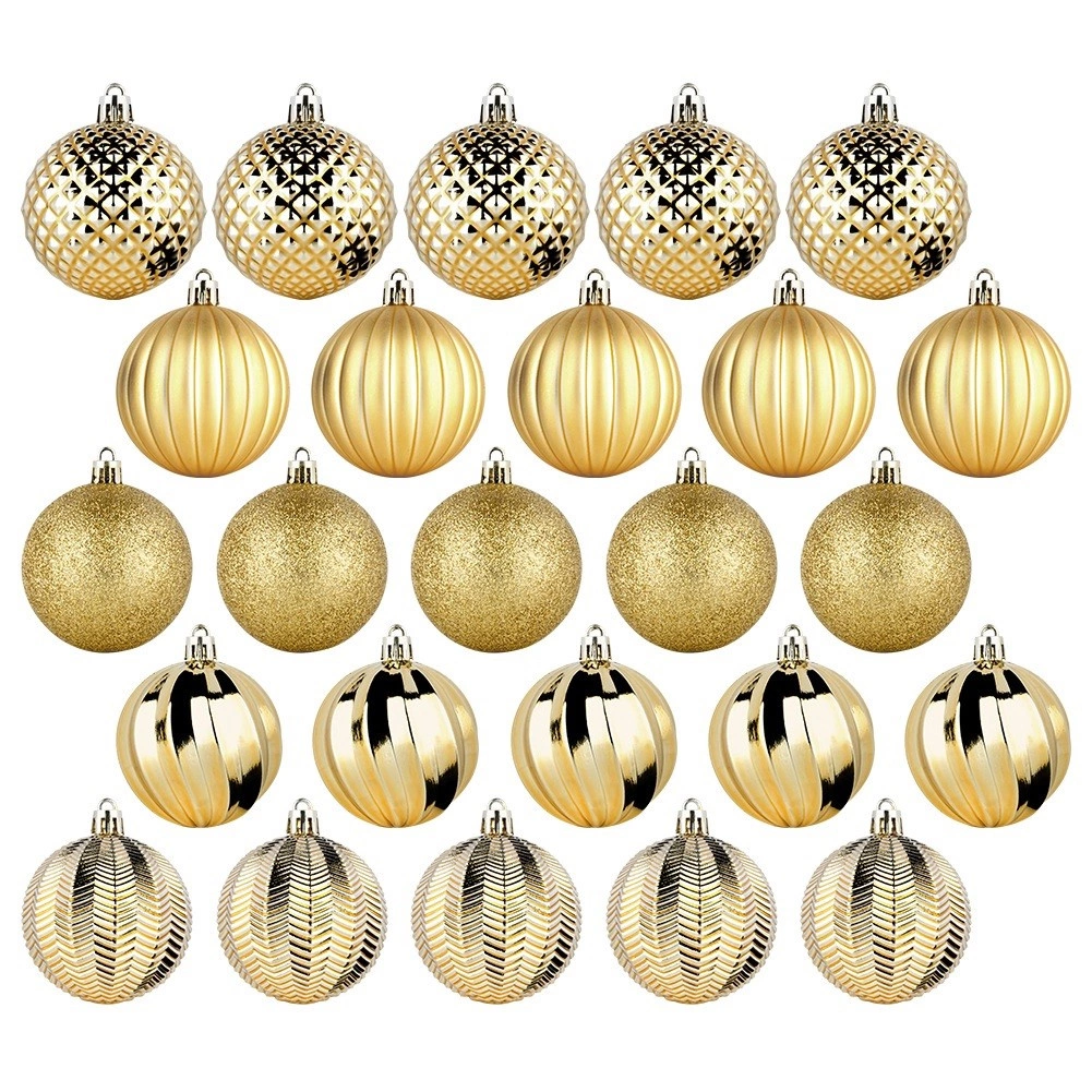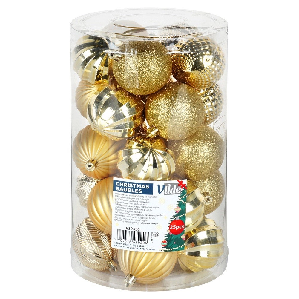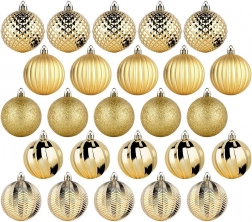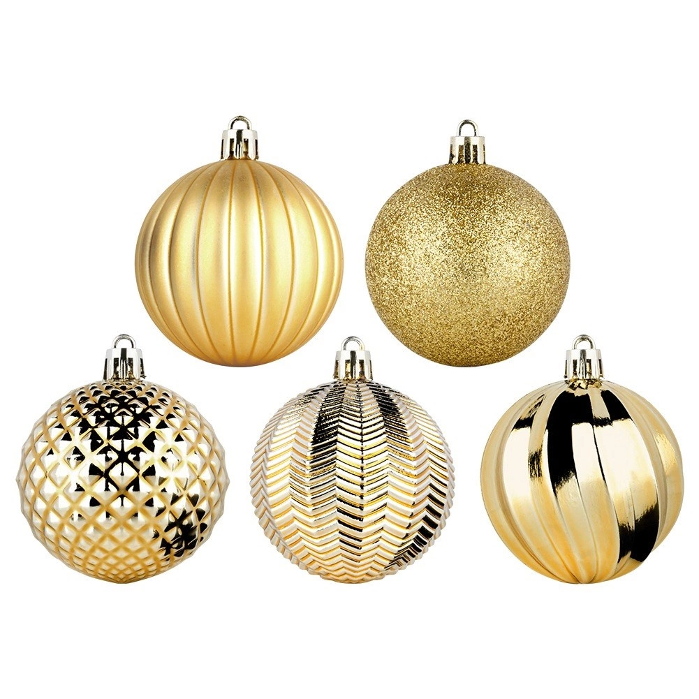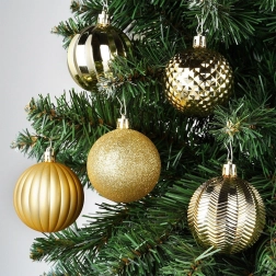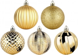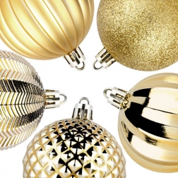 Uz ovaj set u trenu ćete stvoriti skladno usklađenu blagdansku dekoraciju. Zlato u raznim teksturama daje boru i interijeru luksuzan sjaj i dubinu, dok izdržljiva izrada od kvalitetne plastike osigurava dug vijek bez rizika od razbijanja.