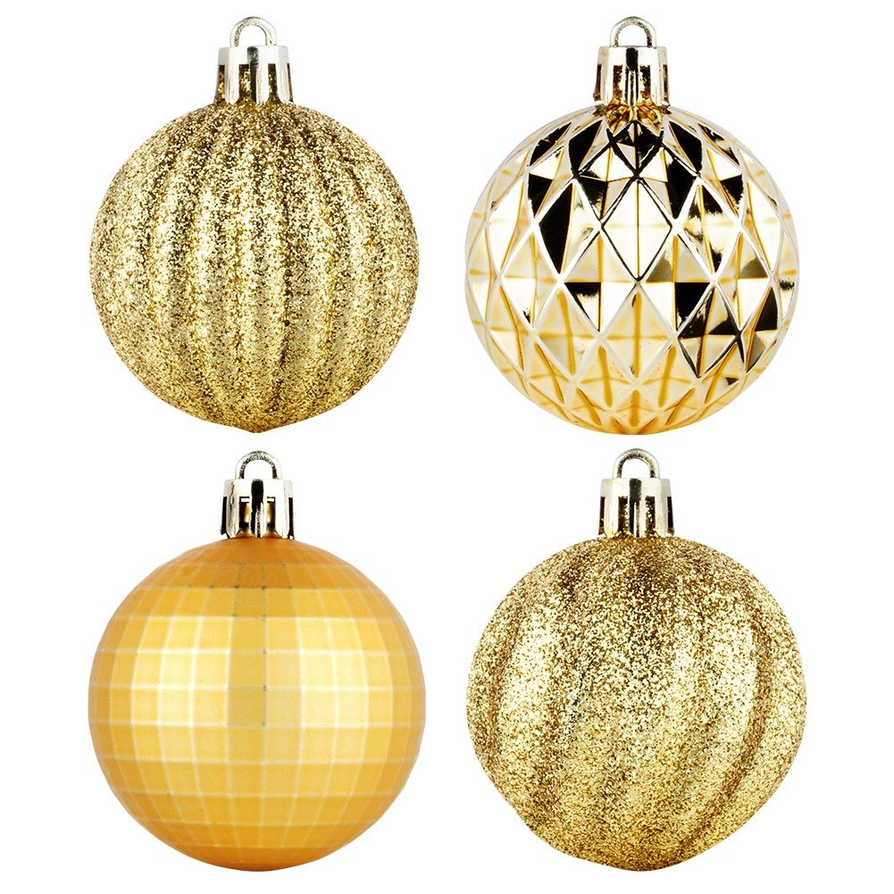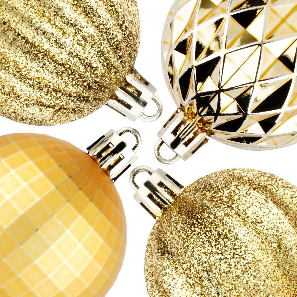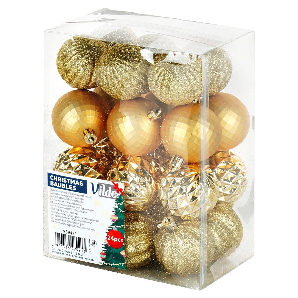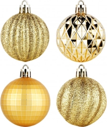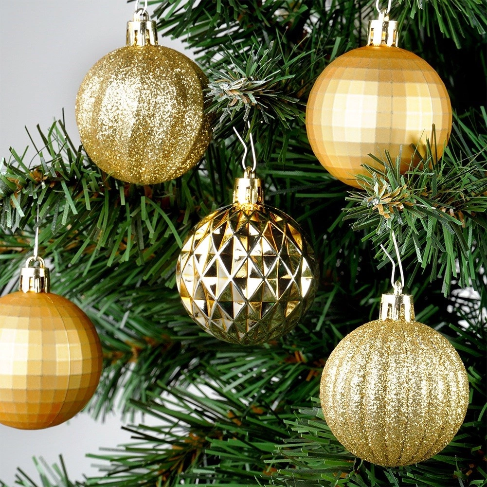 Stvorite čarobnu blagdansku atmosferu uz set zlatnih kuglica koje će vašem boru dodati luksuzan sjaj i dubinu. Raznolike teksture i površine osiguravaju vizualno bogat i skladan ukras koji će se istaknuti na svakoj grani.