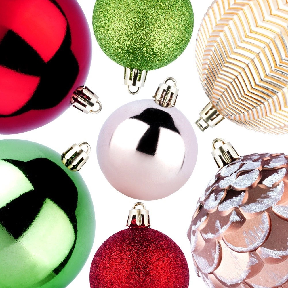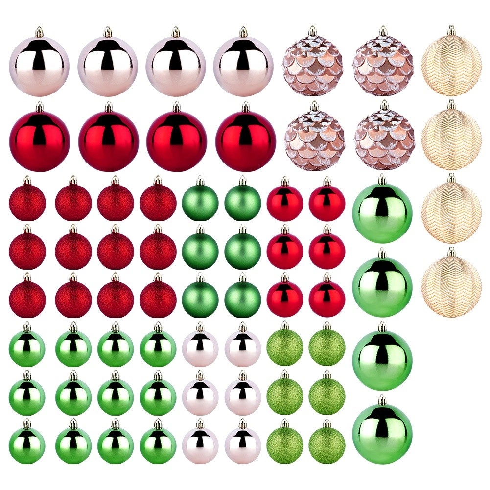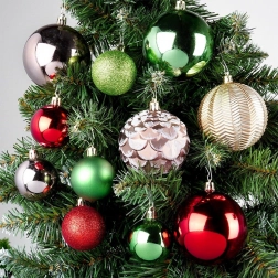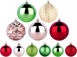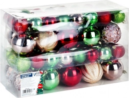 U pakiranju se nalazi 20 kom kuglica promjera 8 cm (sjajne crvene, reljefne zlatne, sjajne i reljefne svijetloružičaste, sjajne zelene) i 48 kom promjera 5 cm (sjajne crvene 6×, zelene s glitterom 6×, sjajne svijetloružičaste 6×, crvene s glitterom 12×, sjajne zelene 12×, mat zelene 6×). Svaki ukras ima metalnu omčicu, a u pakiranju su i vezice za trenutno ukrašavanje.
