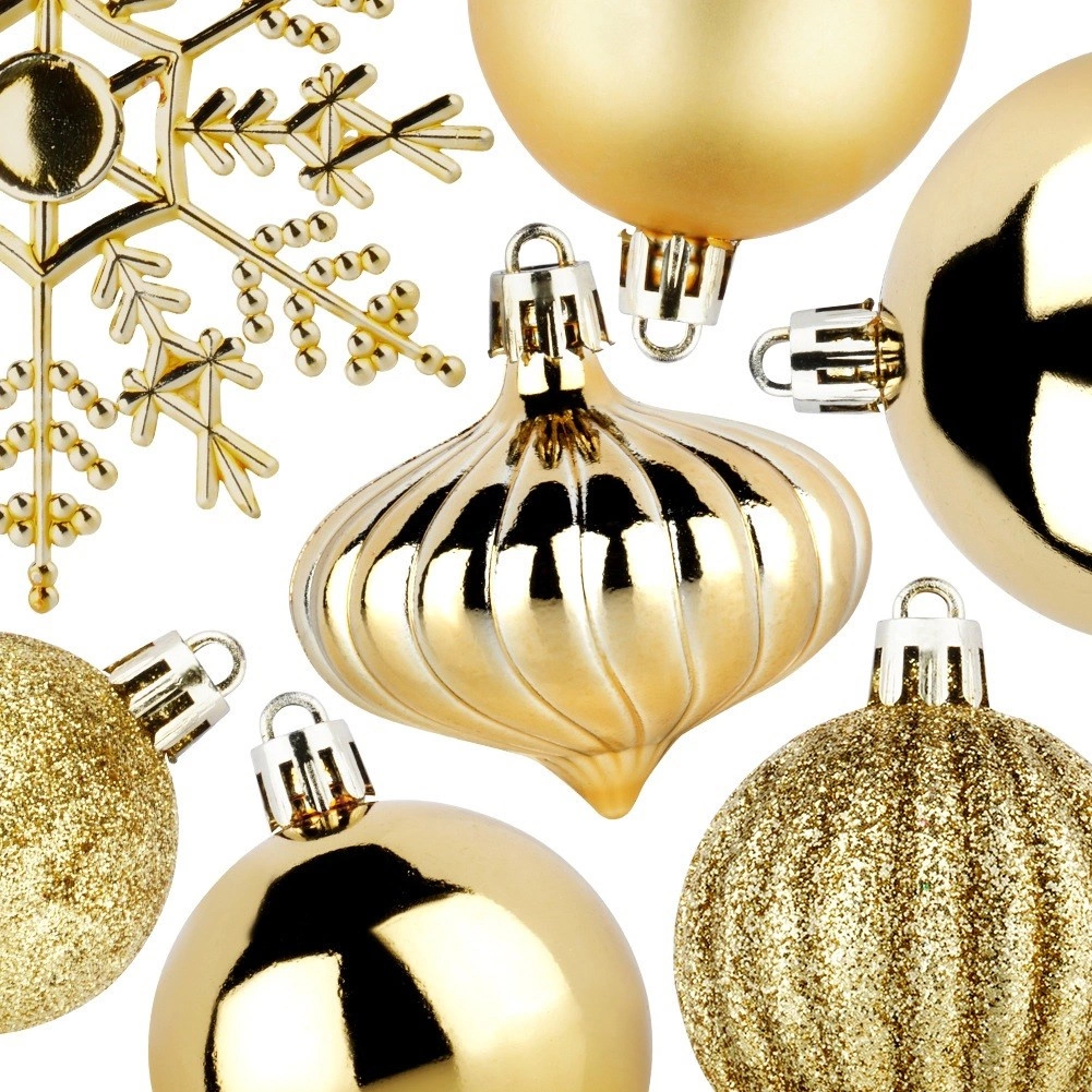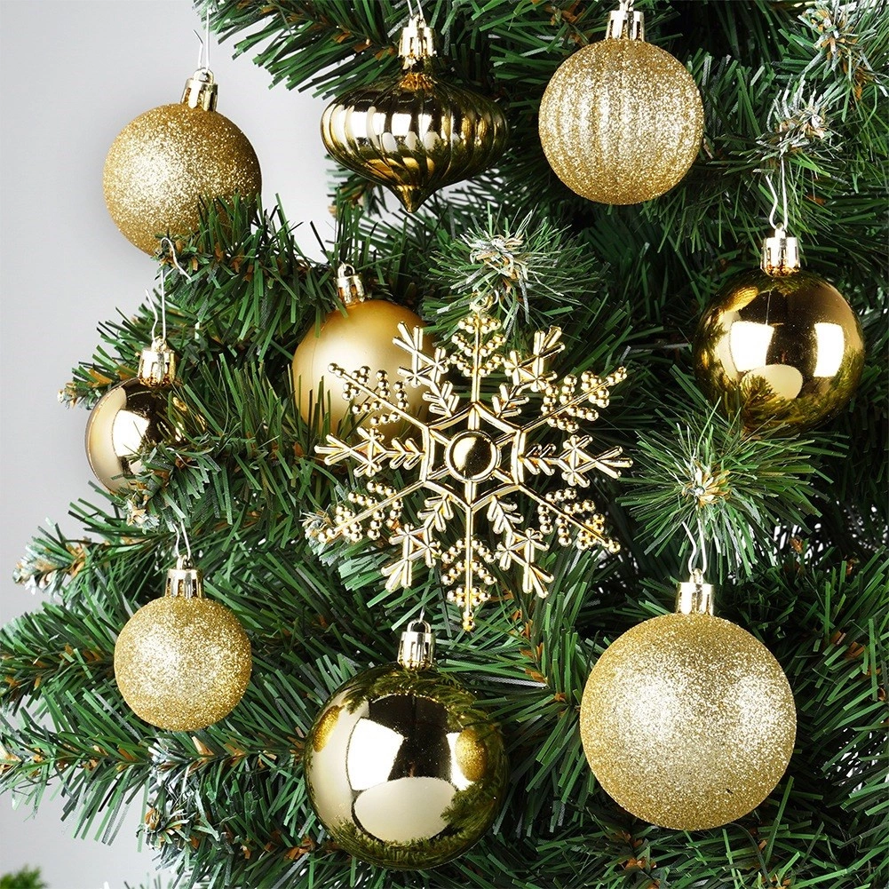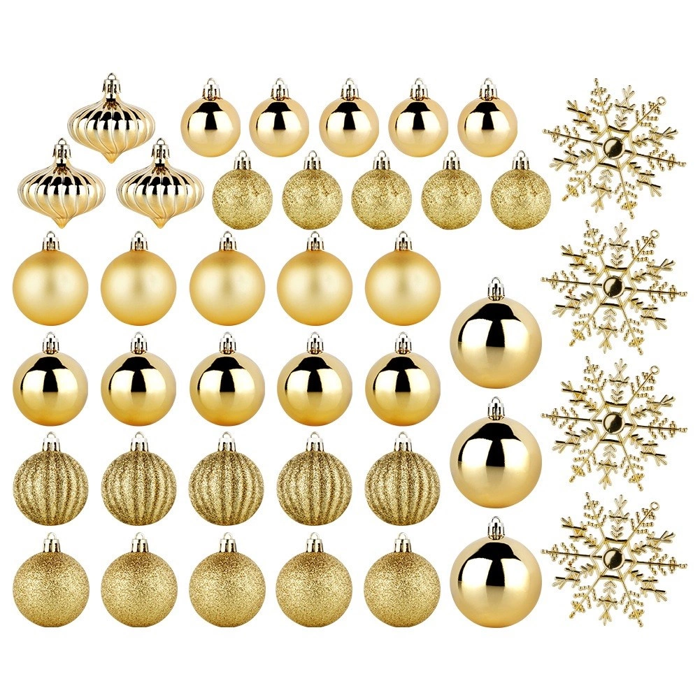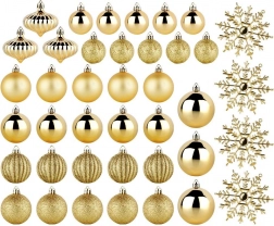 Paket uključuje 40 kuglica (4, 5 i 6 cm) i 4 snježne pahuljice od 10 cm, uključujući uzice za lako vješanje.