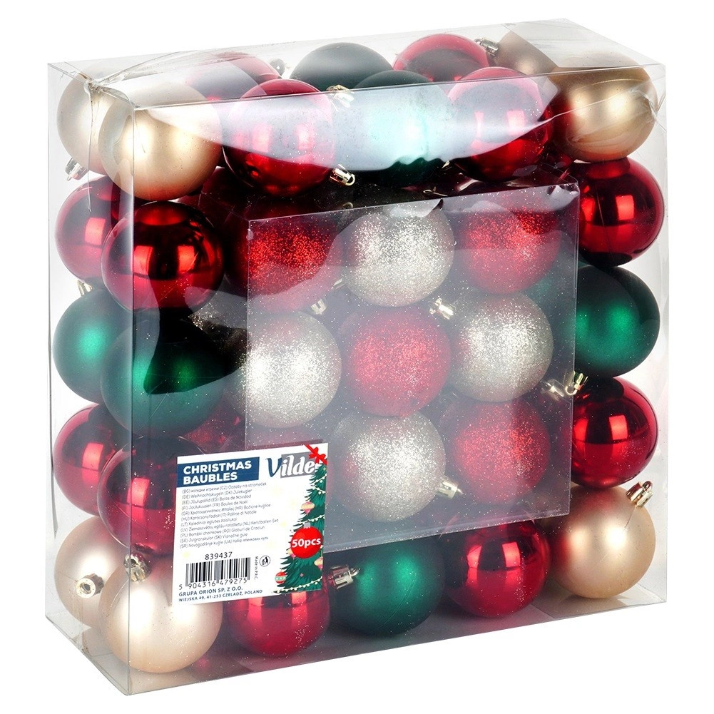Elegantna mješavina boja i završnih obrada omogućuje stvaranje jedinstvene božićne dekoracije na drvcu, vijencima i girlandama. Nebrekiva izvedba od kvalitetne plastike vjerno podsjeća na staklo, ali je lagana, trajna i sigurna za cijelu obitelj.