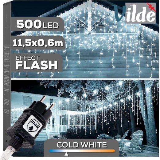 Stilska svjetlosna zavjesa s 500 štedljivih LED dioda stvara očaravajuću blagdansku dekoraciju na fasadi, pergoli ili u interijeru. Prozirni vodiči i različite duljine visećih grana (35, 40, 45 i 60 cm) stvaraju realističan efekt svjetlucavih ledenica, a neke diode nježno bljeskaju za još dojmljiviji izgled.