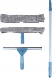 Ovaj 4-dijelni set za pranje prozora idealan je za kućanstva, urede i zimske vrtove. Teleskopska šipka s rasponom 50–95 cm omogućuje sigurno čišćenje bez ljestava, mikrovlakno učinkovito upija nečistoće, a voda se brzo uklanja gumenim brisačem za kristalno čiste prozore bez tragova.