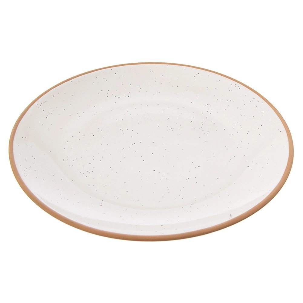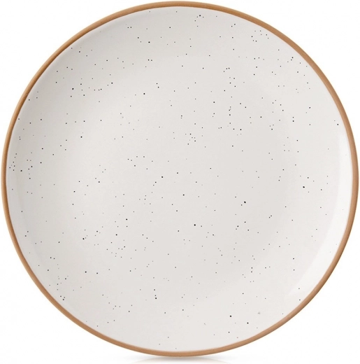 Elegantni keramički tanjur promjera 20 cm ističe se prošaranom glazurom i kontrastnim, prirodno oblikovanim rubom. Zahvaljujući univerzalnom obliku i glatkoj površini odličan je za svakodnevnu upotrebu i svečano posluživanje. Minimalistički izgled lako ćete uskladiti s ostalim komadima posuđa.