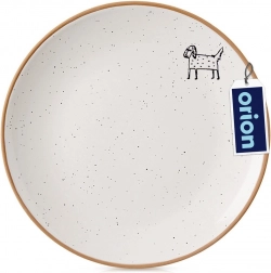Otkrijte svestrani desertni tanjur koji će odlično nadopuniti vaš postojeći set posuđa. Upečatljiva bež nijansa s pjegastom glazurom i prirodni rub daju tanjuru moderan izgled koji se ističe i u svakodnevnom blagovanju i u svečanim prigodama. Suptilni reljefni ukras s motivom psa pruža originalan šarm.