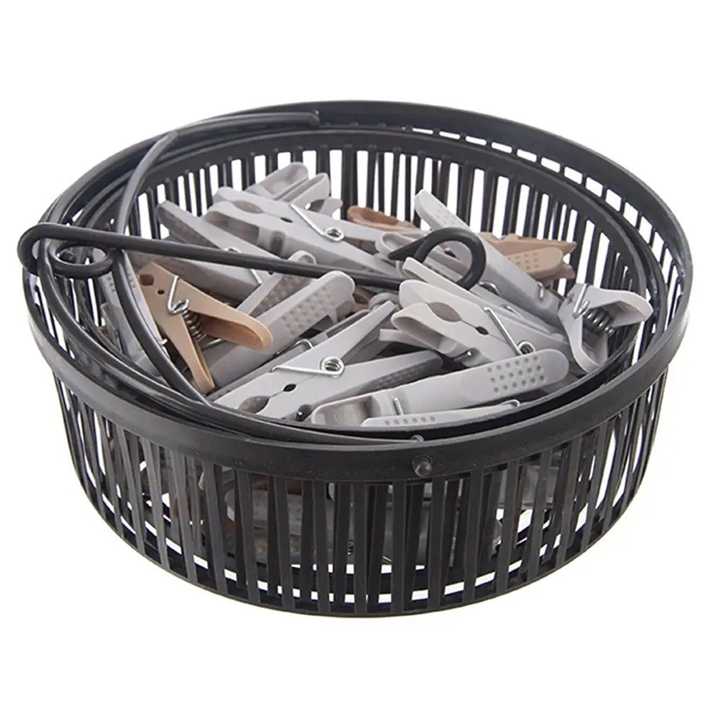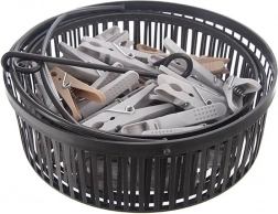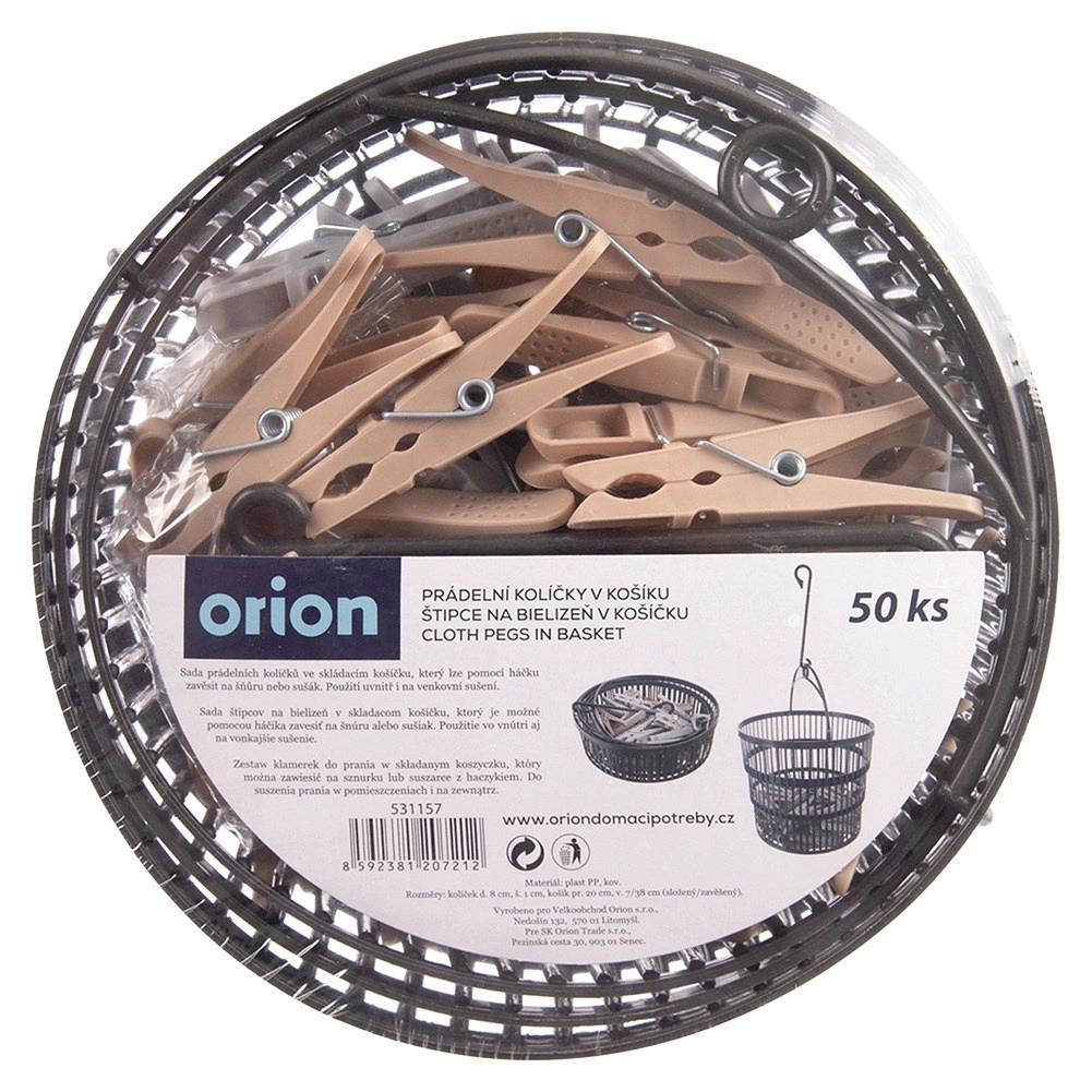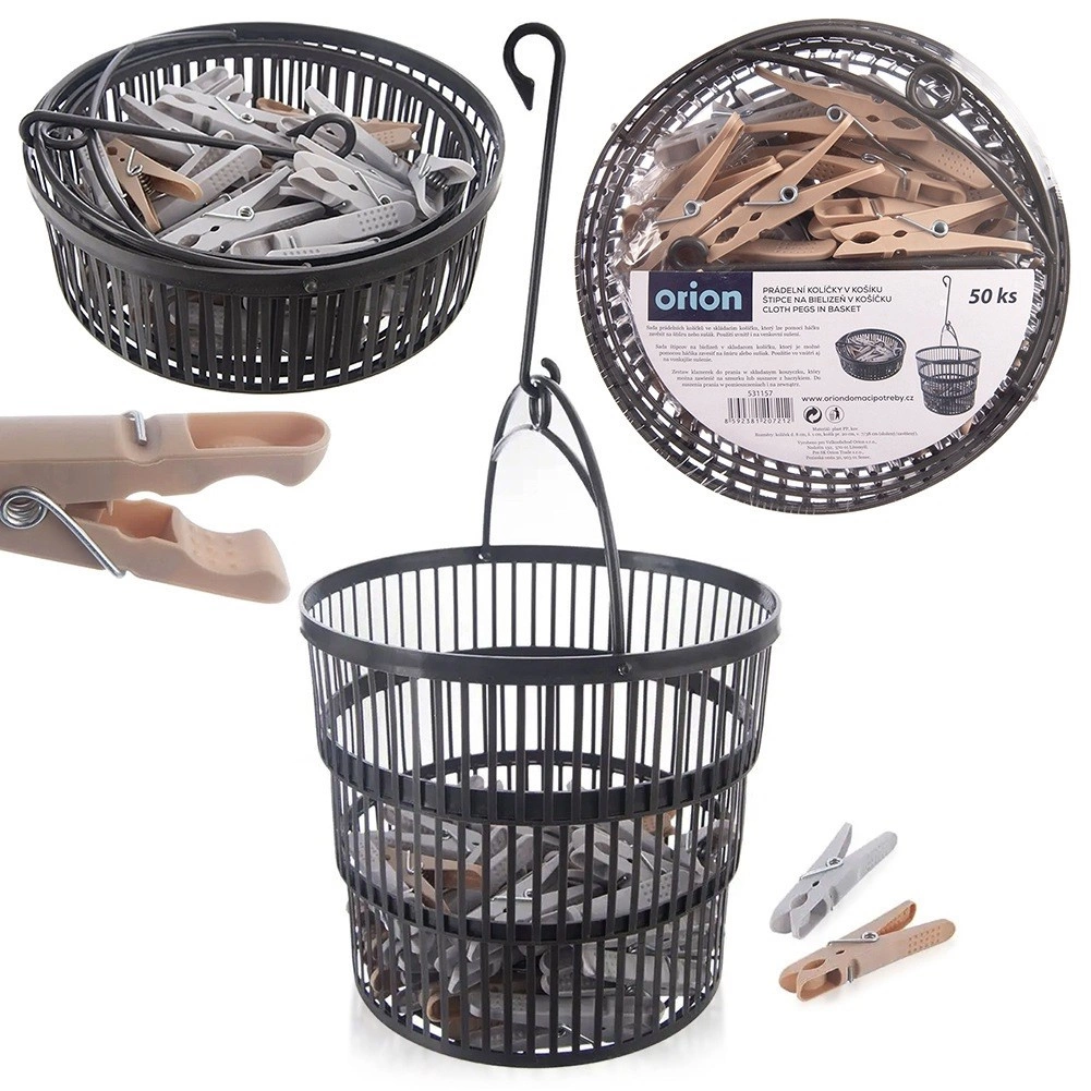 Set sadrži 50 izdržljivih kvačica u praktičnoj košari koju je moguće objesiti na sušilo ili konop. Otvorena, prozračna konstrukcija košare omogućuje otjecanje vode i brzo sušenje, pa su vam kvačice uvijek pri ruci. Kvačice u sivoj i bež boji izrađene su od kvalitetne plastike s metalnom oprugom za dugotrajnost.