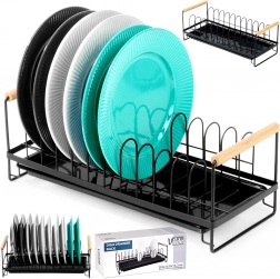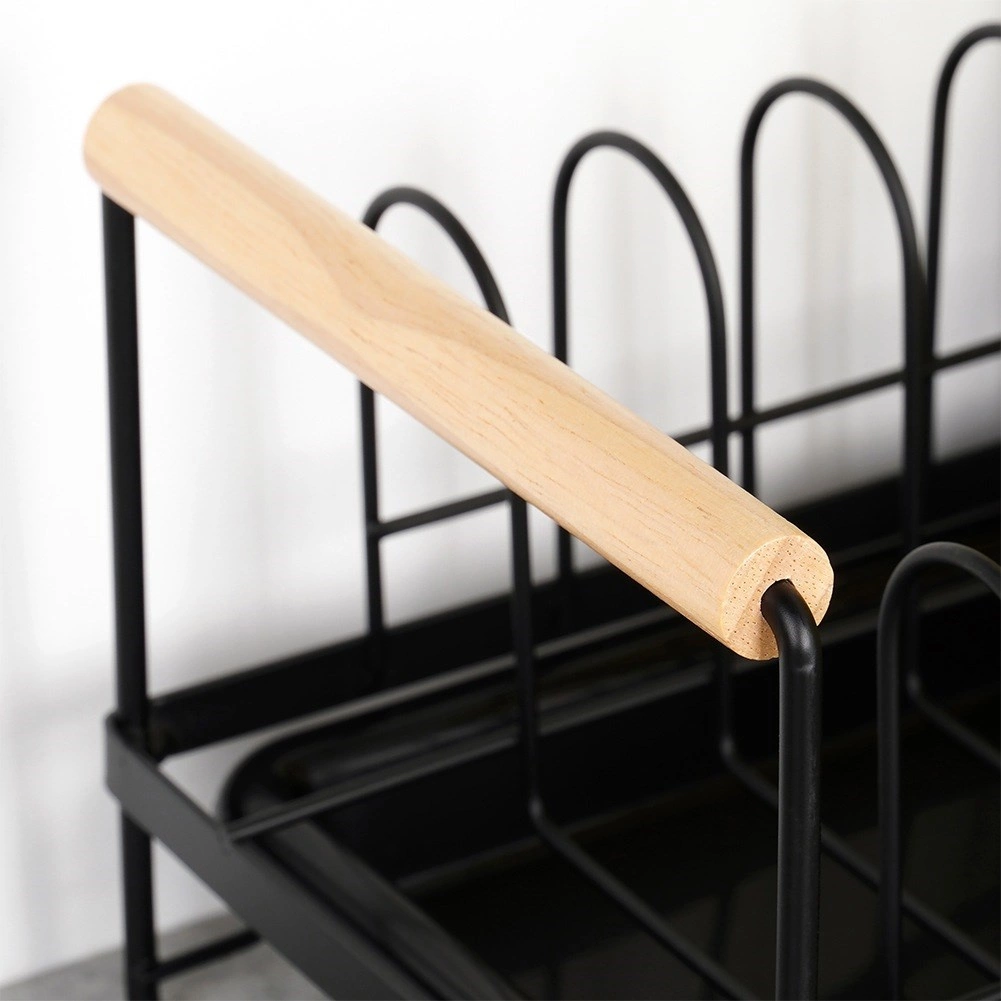 Masivan metalni okvir u mat crnoj boji pruža stabilnost i dug vijek trajanja, dok izvadiva ocjeđujuća posuda olakšava čišćenje i održava kuhinjske površine suhima. Bambusove ručke olakšavaju rukovanje i daju proizvodu prirodni akcent.