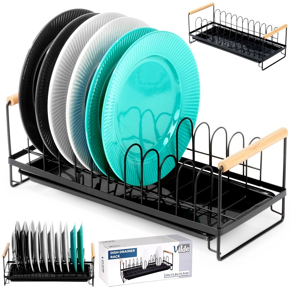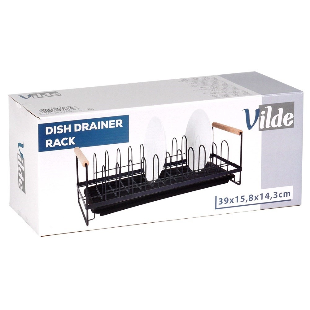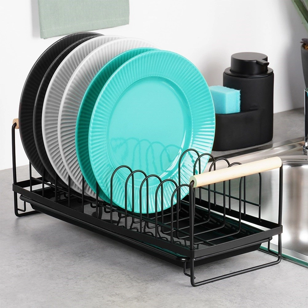 Elegantni i funkcionalni ocjeđivač za posuđe koji učinkovito suši tanjure i istovremeno štiti radnu plohu od vlage. Zahvaljujući kompaktnim dimenzijama 39 × 16 × 14,5 cm lako se smješta pokraj sudopera i osigurava red nakon svakog pranja.