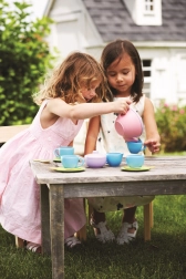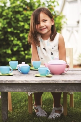 Set je idealan za čajni party za do četvero djece. Potiče maštovitu igru, komunikaciju i finu motoriku. Zahvaljujući čvrstoj izradi prikladan je za igru u domu, u vrtu ili u pješčaniku.