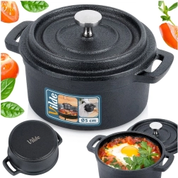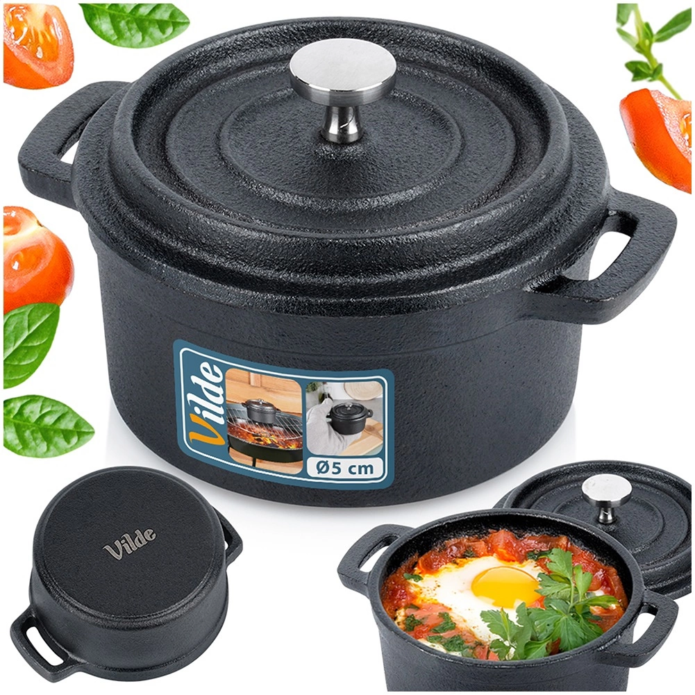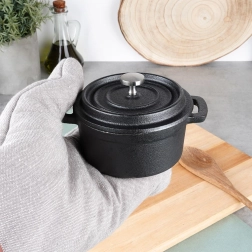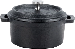 Ovaj minijaturni lonac od lijevanog željeza u obliku cocotte posude impresionira izdržljivom konstrukcijom i svestranošću. Prikladan je za štednjak, izravnu vatru i pećnicu, pa lako pripremite i poslužite juhe, umake, zapečena jela, povrće ili deserte.
