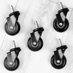 Ugradnja je trenutačna – bez alata dovoljno je izvući stari kotačić i umetnuti novi. Kotačići su dizajnirani za svakodnevnu upotrebu, imaju gladak hod s ležajem i izdržljivu konstrukciju za dugi vijek trajanja. Prikladni za urede i kućne radne prostore.