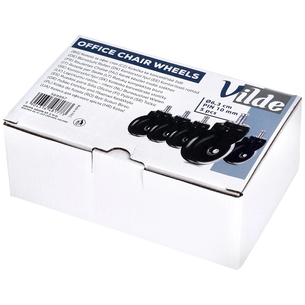 Poboljšajte svoju uredsku stolicu setom izdržljivih kotača od kaučuka koji osiguravaju tih rad i nježan start na svim tvrdim podlogama. Zahvaljujući klinu promjera 10 mm, kotači su kompatibilni s većinom uobičajenih stolica i odabranim modelima IKEA s istim tipom prihvata.