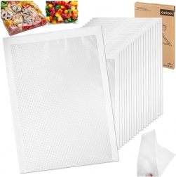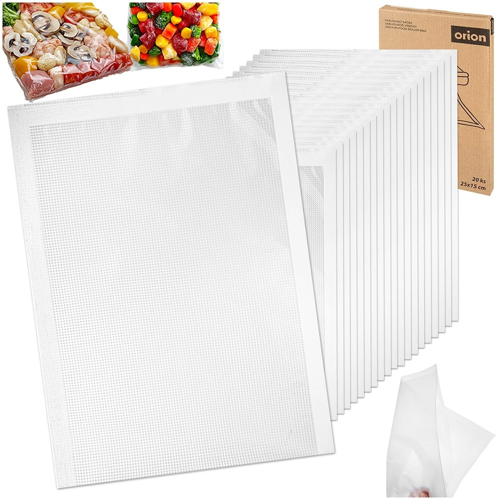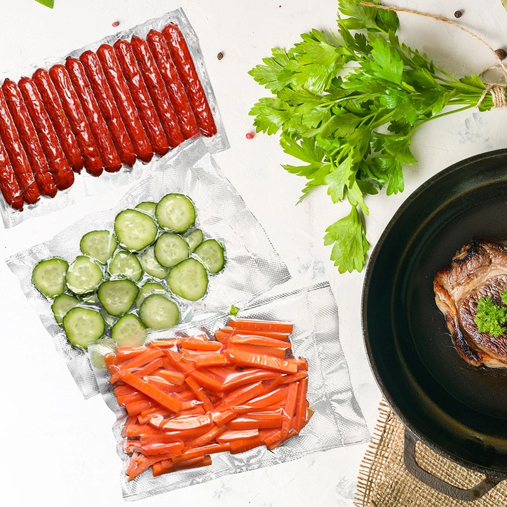 Vrećice su od izdržljive najlonske folije, pogodne za temperature od −20 °C do +110 °C – idealno za zamrzavanje, mariniranje i sous‑vide. Mogu se pažljivo koristiti više puta, što štedi novac i okoliš. Kompatibilne s većinom kućnih vakuumskih uređaja.