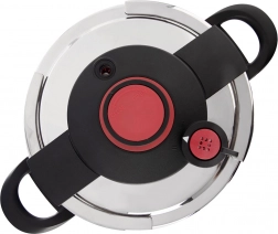 Praktičan nehrđajući tlačni lonac zapremnine 5 l s automatskim zatvaranjem poklopca, dvostrukim sendvičnim dnom i 2 programa kuhanja za brzo, sigurno i štedljivo kuhanje. Pogodan za sve vrste štednjaka, uključujući indukciju, s mogućnošću ispuštanja pare i pomoćnim sigurnosnim ventilom. Idealan za juhe, gulaše, meso, povrće i jela iz jednog lonca.