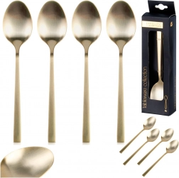 Dodajte svom stolu dašak luksuza setom od 4 čajne žličice u satenski zlatnoj boji. Moderne, čiste linije i brušena površina izvrsno se slažu s klasičnim i modernim interijerom doma i kavana. Izdržljiv nehrđajući čelik siguran je za kontakt s hranom i jamči dug vijek trajanja.