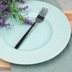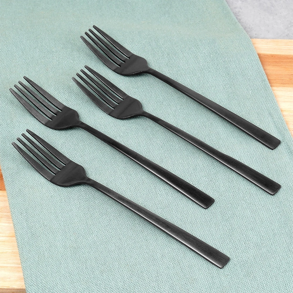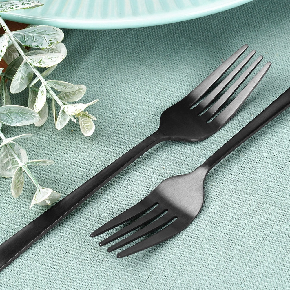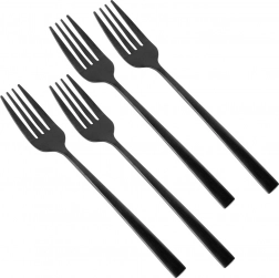 Uljepšajte postavu stola stilskim desertnim vilicama s mat crnom satenskom završnom obradom. Zahvaljujući kvalitetnom nehrđajućem čeliku, izdržljive su, zdravstveno sigurne i dugoročno zadržavaju elegantan izgled. Odlično se uklapaju i s klasičnim i s modernim setovima posuđa.