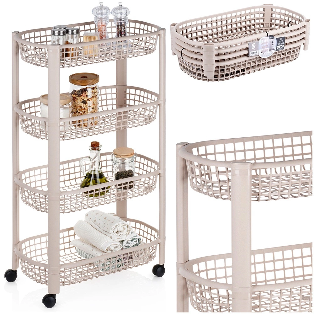 Robusna, a ipak lagana izvedba od izdržljive plastike jamči laku montažu i stabilnost. Zahvaljujući četirima okretnim kotačićima (dva s kočnicom) policu lako premjestite kamo je trenutačno trebate i sigurno je učvrstite na mjestu. Minimalistički bež dizajn prirodno se uklapa u svaki interijer.