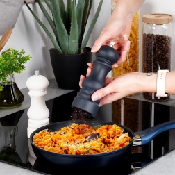 Izdržljivo tijelo u mat bijeloj i crnoj boji osigurava ugodan hvat i dug vijek trajanja. Mlinci se lako pune i čiste, pa je održavanje pitanje trenutka. Zahvaljujući podesivoj gruboći mljevenja postići ćete i fini prah i krupnije komadiće, ovisno o jelu.