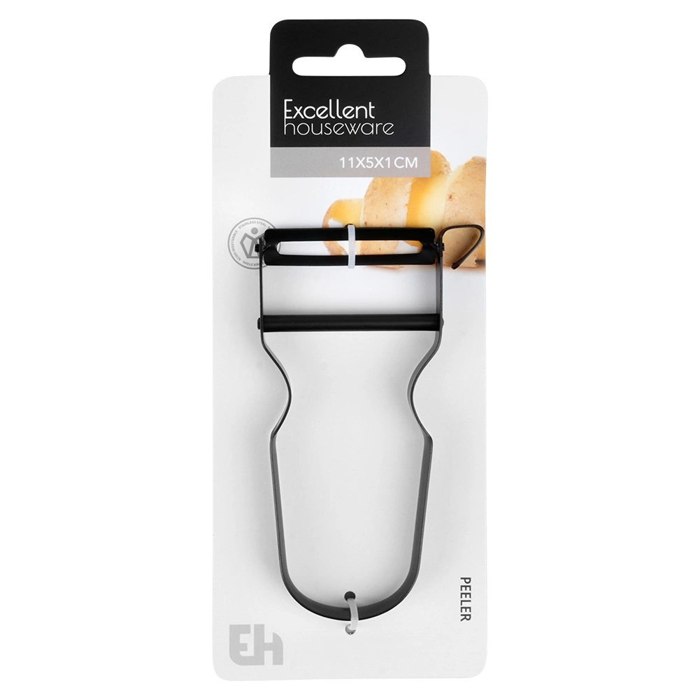 Praktična Y-gulilica dimenzija 11,5 × 5,3 × 1 cm s duljinom oštrice 5 cm lako se nosi s korama krumpira, mrkve, jabuka ili krastavaca. Tijelo od nehrđajućeg čelika s izdržljivim praškastim premazom u mat crnoj boji osigurava dugotrajnost i moderan izgled.