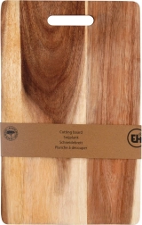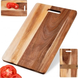 Pravokutna daska od kvalitetnog bagremovog drva pruža visoku otpornost, stabilnost i dug radni vijek. Prirodna površina s lijepom teksturom drva nježna je prema noževima, a zahvaljujući debljini od 1,5 cm dobro prigušuje udarce pri rezanju. Praktična ručka omogućuje udobno prenošenje i vješanje.