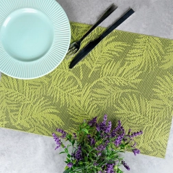 Dekorativni zeleni uzorak listova daje postavljanju stola moderan i prirodan karakter, pristaje kuhinji i blagovaonici.