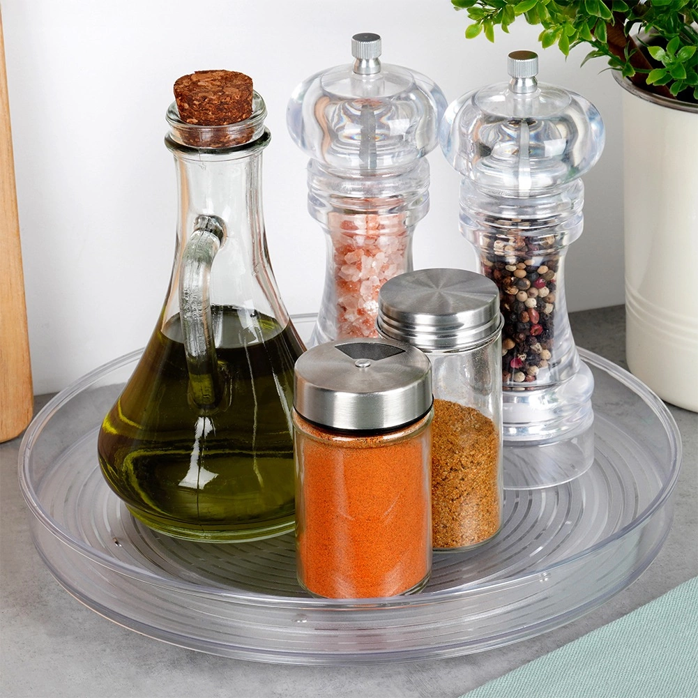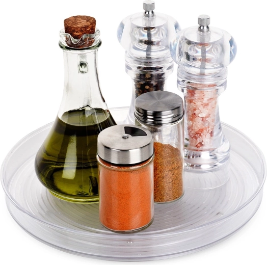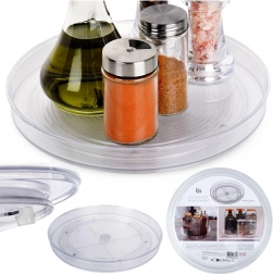 Okretna podloška tipa Lazy Susan pomaže učinkovito organizirati začine, kozmetiku, boce ili sitnice u kućanstvu. Zahvaljujući 360° rotaciji bez napora dolazite do svih stavki, bez potrebe za preslagivanjem sadržaja police ili ormarića. Transparentna plastika osigurava trenutačan pregled pohranjenih predmeta.