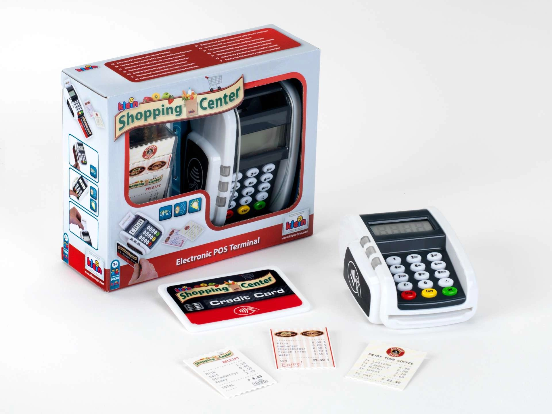 Realistični dječji platni terminal marke KLEIN donosi zabavu kao na blagajni. Nudi funkcionalne tipke, čitač beskontaktnog plaćanja, svjetlosne i zvučne efekte te djeci omogućuje na razigran način razvijati maštu kroz igru trgovine ili restorana.