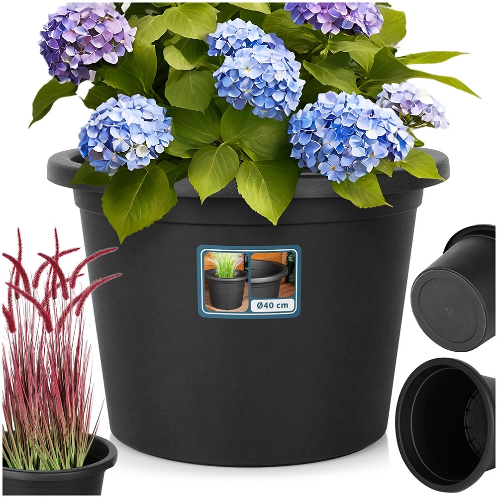 Ova velika vrtna posuda s klasičnim okruglim oblikom izvrsna je za sadnju ukrasnih trava, cvijeća i manjih grmova. Zahvaljujući čvrstoj i laganoj konstrukciji njome je lako rukovati, a crna izvedba djeluje elegantno u svakom eksterijeru.