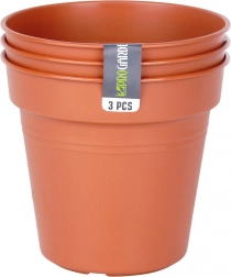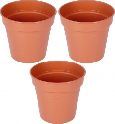 Praktičan set od 3 plastične posude s gornjim promjerom 13 cm i visinom 12 cm odličan je odabir za uzgoj začinskog bilja, balkonskih i sobnih biljaka. Klasičan okrugli oblik i ciglasti ton uklapaju se u svaki interijer te na balkon, terasu ili u vrt. Lagani, izdržljivi materijal olakšava rukovanje i čišćenje.
