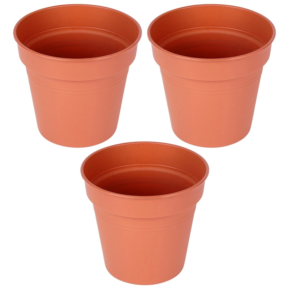 Uz ovaj set od tri posude lako ćete izložiti svoje omiljeno začinsko bilje i cvijeće u domu i na otvorenom. Bezvremenski okrugli dizajn u ciglastoj nijansi pristaje svakom stilu i naglašava prirodnu ljepotu biljaka. Materijal je lagan, a ipak izdržljiv i jednostavan za čišćenje.