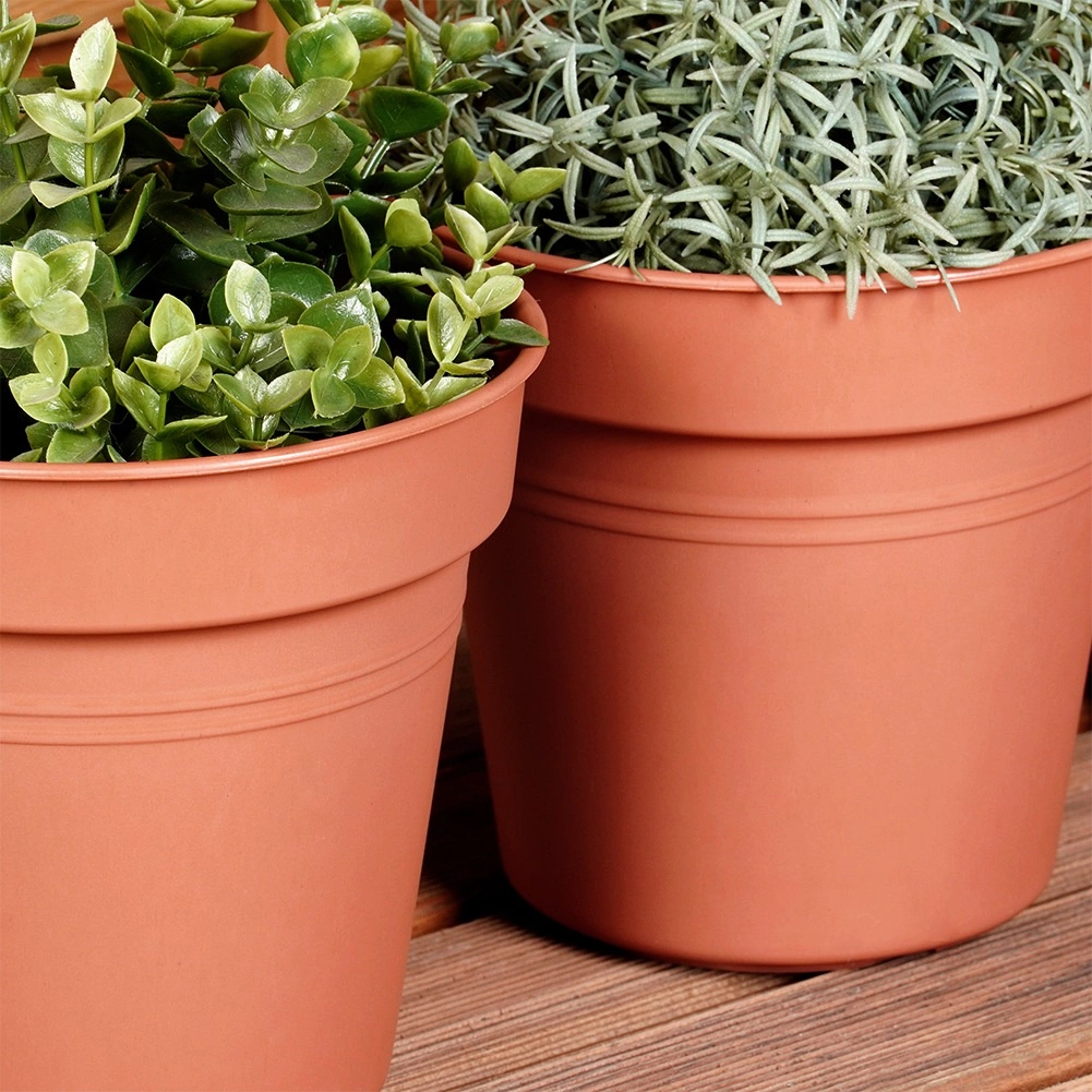 Klasičan okrugli oblik i ciglasta nijansa pristaju modernom i rustikalnom stilu. Odlično za začinsko bilje na kuhinjskoj prozorskoj dasci, sezonsko cvijeće na balkonu i zelenilo na terasi.