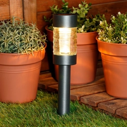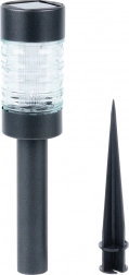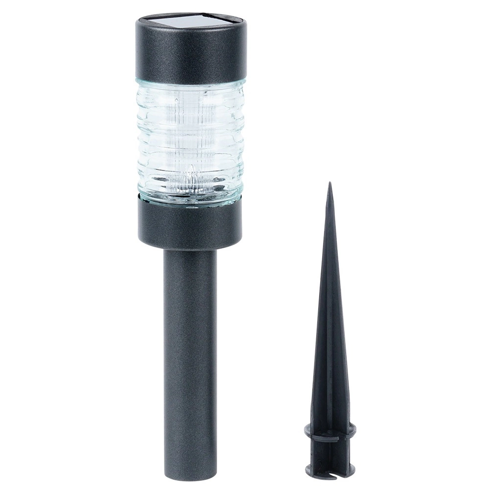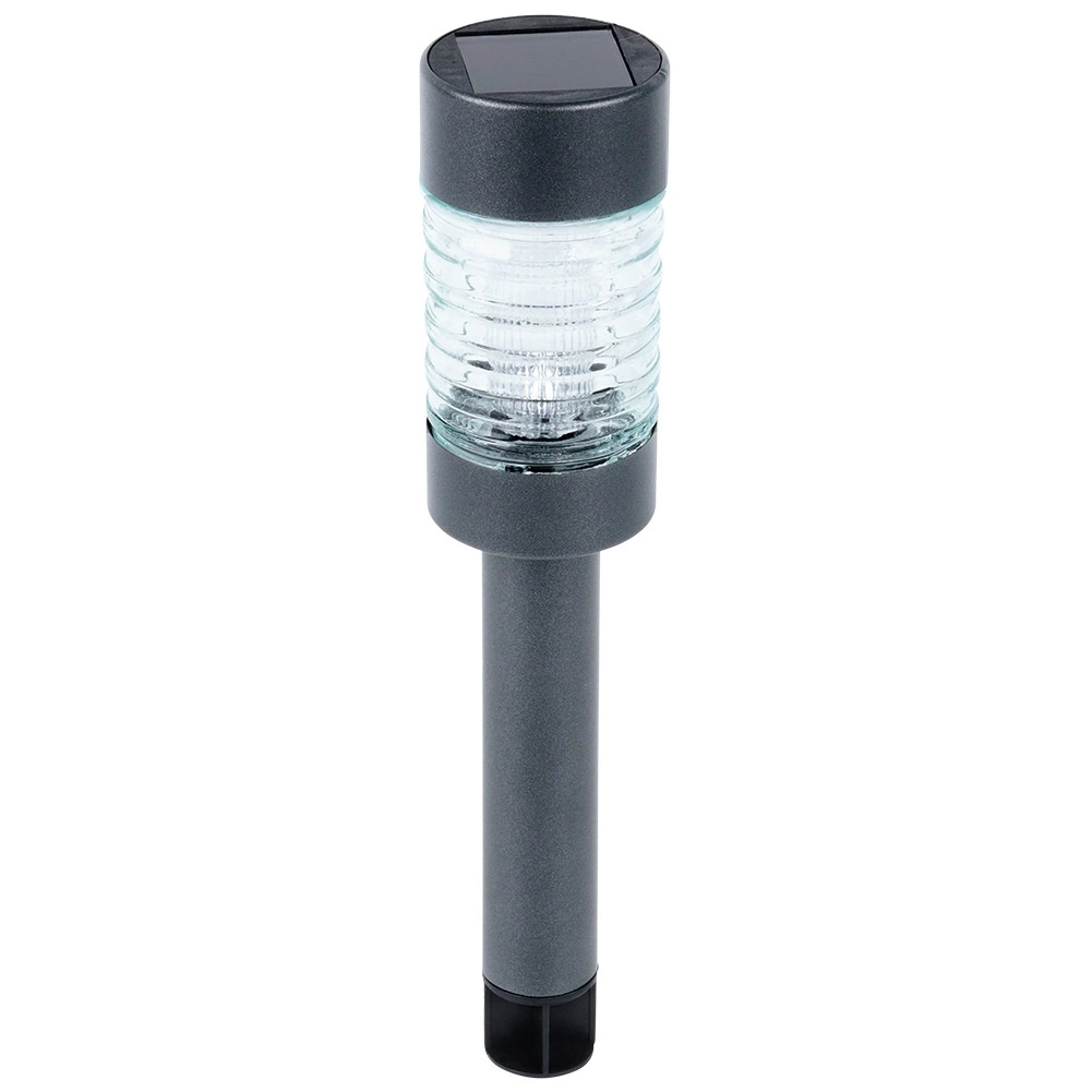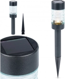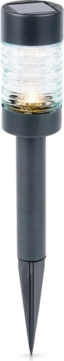 Kućište lampe izrađeno je od nehrđajućeg čelika lakiranog u tamnosivo, a šiljak je od izdržljive crne plastike. Ugradnja je trenutačna – dovoljno je zabosti u tlo, bez kabela i alata. Lampa se napaja suncem te je energetski učinkovita i ekološki prihvatljiva.