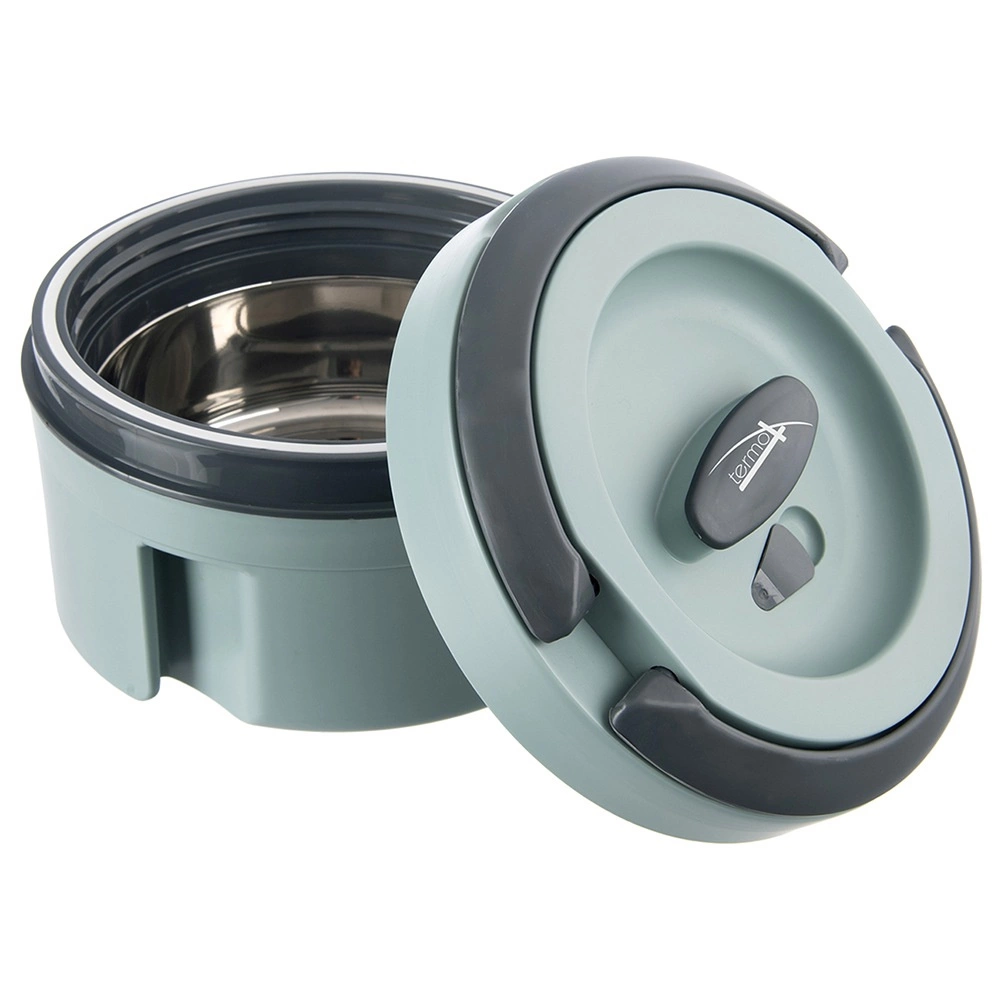 Termo posuda za hranu zapremine 2,4 l kombinira izdržljivu unutarnju komponentu od nehrđajućeg čelika s čvrstom plastičnom školjkom u modernoj mentol boji. Zahvaljujući kvalitetnom brtvljenju i ventilu na poklopcu, sadržaj je sigurno zatvoren, bez rizika od curenja i s mogućnošću lakog otvaranja nakon otpuštanja pretlaka.
