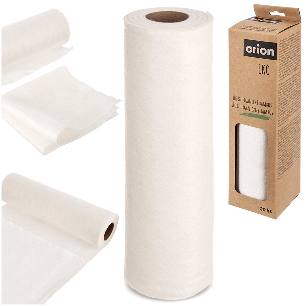 Praktične bambusne kuhinjske role s perforacijom za lako trganje. Pakiranje sadrži 20 listova dimenzija 32 × 28 cm. Izrađene od 100% organskog bambusa, iznimno su upijajuće, čvrste i višekratno upotrebljive. Pogodne za suho i mokro čišćenje, mogu se prati na 30 °C. Ekološki izbor – biorazgradive i kompostabilne.