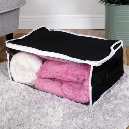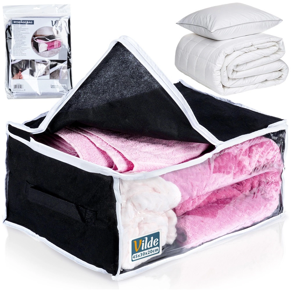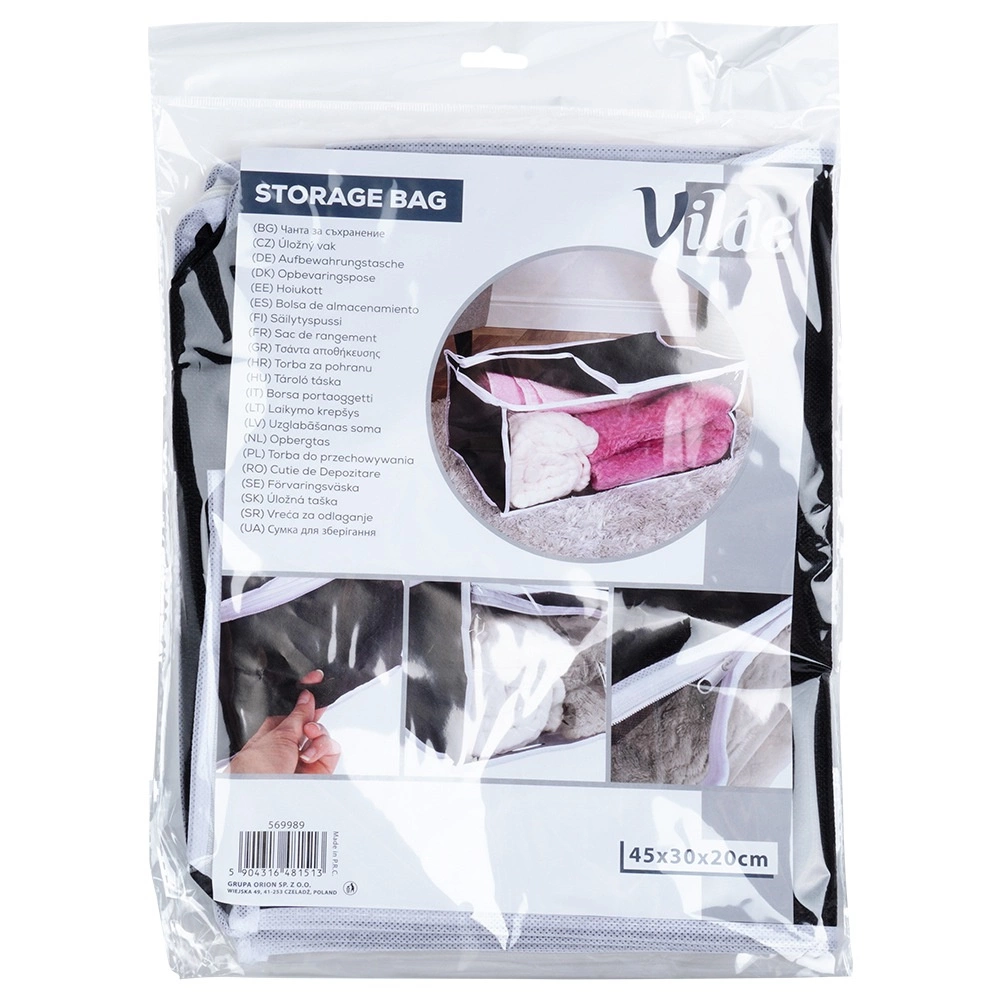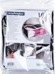 Ova izdržljiva spremna vreća zapremnine 27 l i dimenzija 45 × 30 × 20 cm izrađena je od čvrste poliesterske tkanine. Pouzdano štiti vašu posteljinu i ostale tekstile od vanjskih utjecaja, a pritom održava dom urednim i čistim.