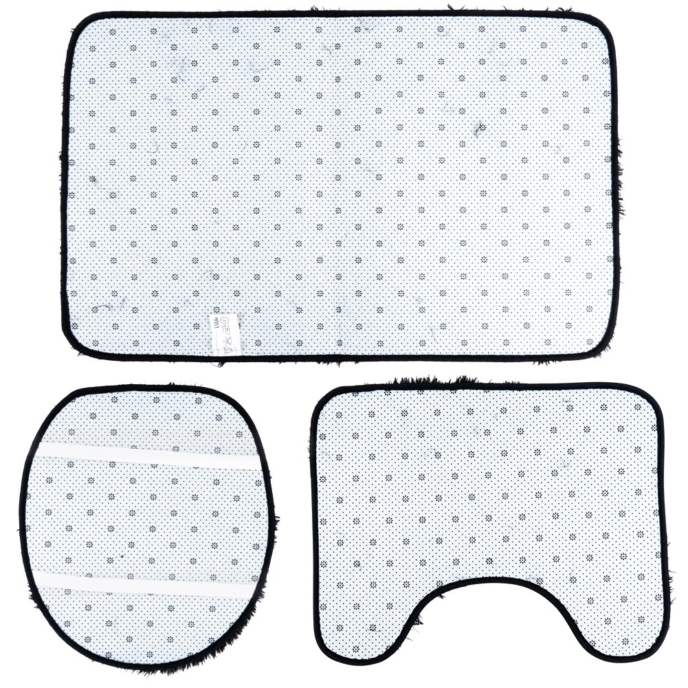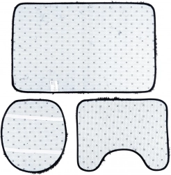 Pravokutna podloga uz kadu/tuš, U‑podloga za WC i navlaka za poklopac WC školjke s gumicama za stabilno pričvršćivanje.
