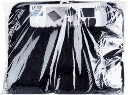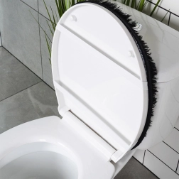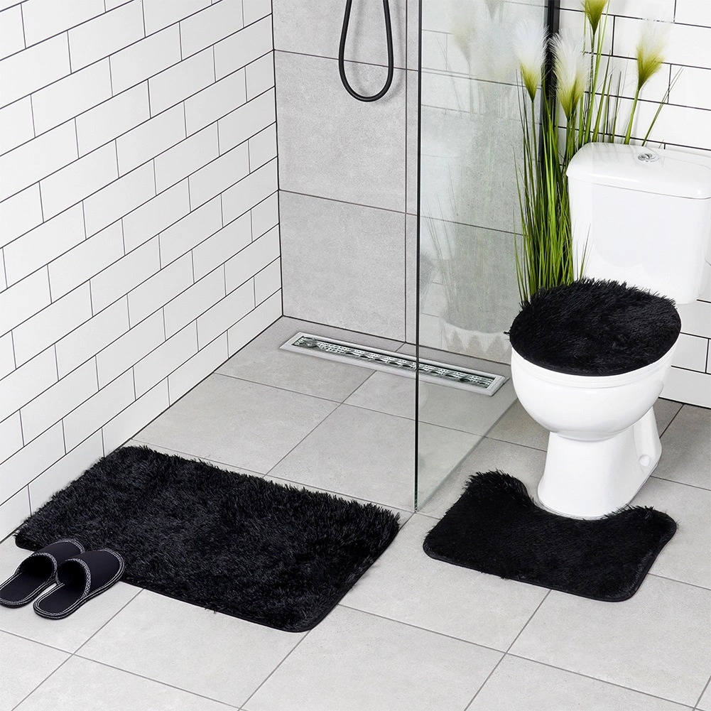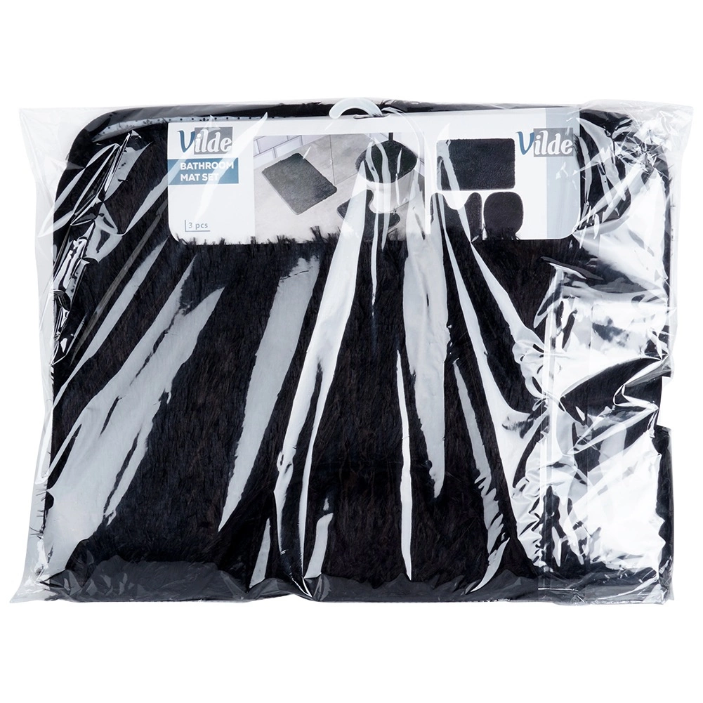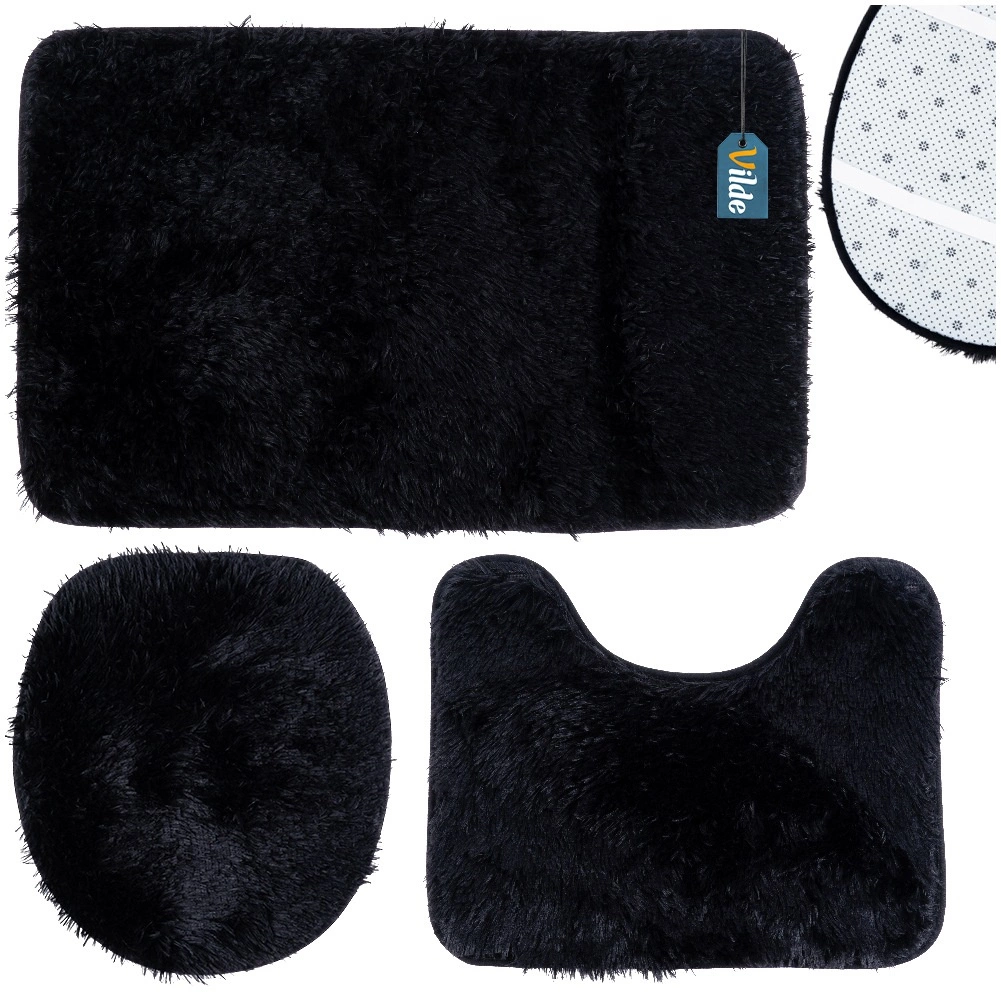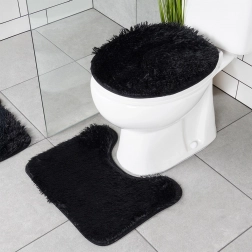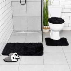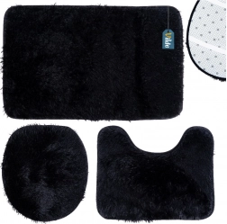 Set uključuje pravokutnu podlogu uz kadu ili tuš, U‑izrez za bazu WC-a za uredan i udoban prostor oko školjke te navlaku za poklopac WC školjke s gumicama za čvrsto pričvršćivanje. Minimalistička crna boja pristaje svakom interijeru i naglašava dizajn kupaonice.