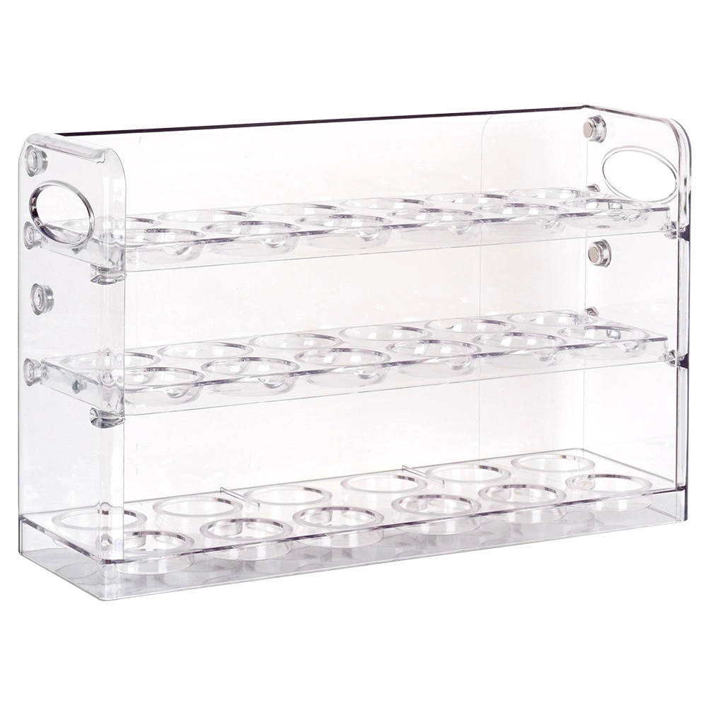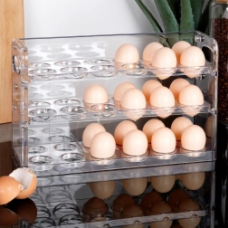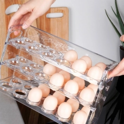 Svaka razina ima precizno oblikovano ležište za jaja, što minimalizira rizik od oštećenja. Konstrukcija omogućuje praktičan pristup nižim razinama kada je gornja razina prazna. Organizator je višekratno upotrebljiv, higijenski i predstavlja ekološkiju alternativu kartonskim pladnjevima.