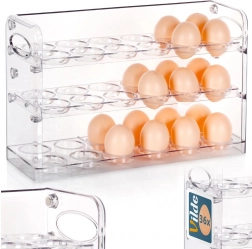 Bez više nereda u hladnjaku. Ovaj kompaktan i stabilan organizator prima do 36 jaja (3 razine × 12 kom) i zahvaljujući prozirnoj plastici uvijek vidite trenutačnu zalihu. Bočne ručke olakšavaju prenošenje i rukovanje u hladnjaku.