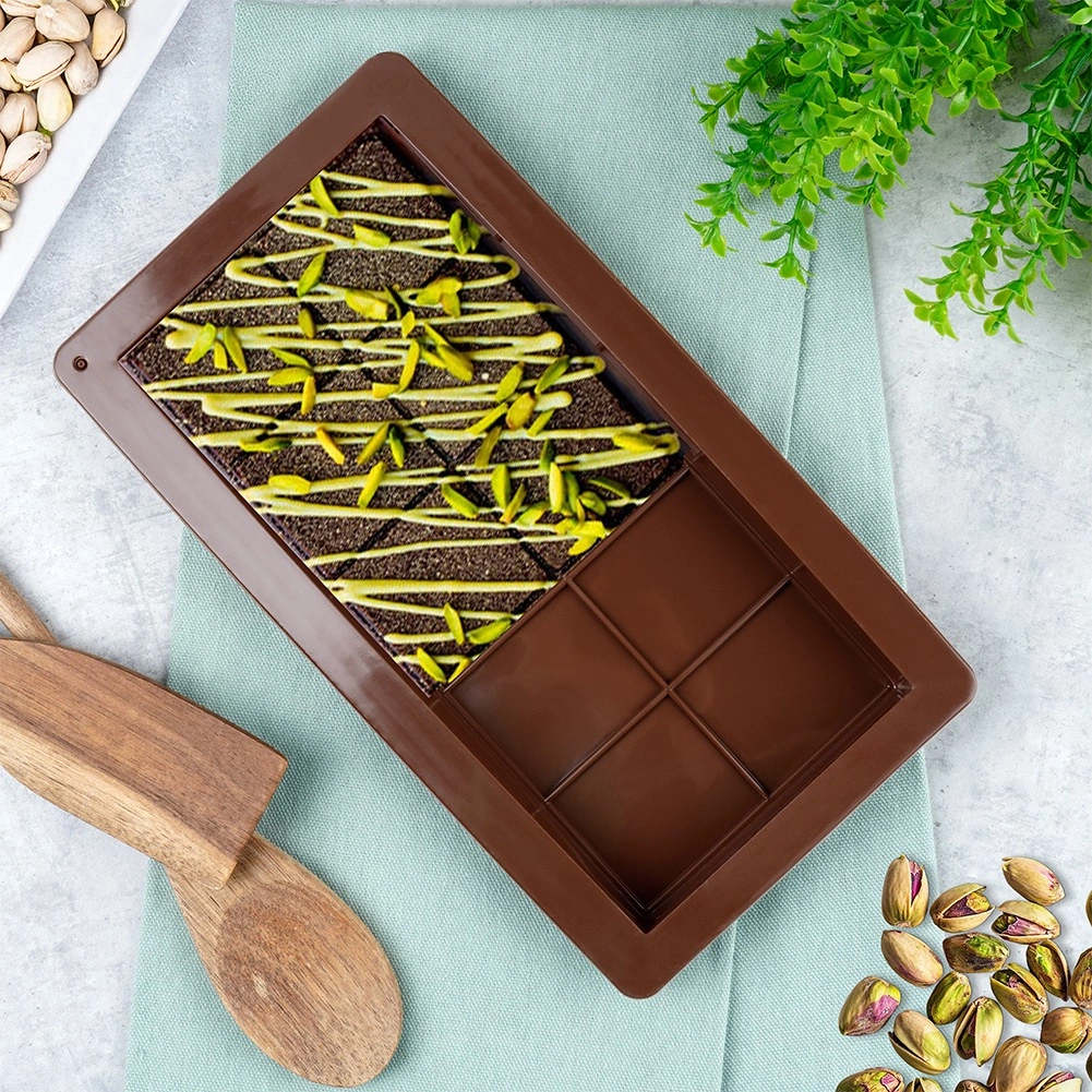 Ovaj kvalitetan silikonski kalup omogućuje vam pripremu savršeno oblikovanih čokoladnih pločica – od klasične mliječne do varijanti s orašastim plodovima, sušenim voćem ili začinima. Fleksibilan i neljepljiv silikon osigurava čiste rubove i lako vađenje bez potrebe za podmazivanjem.