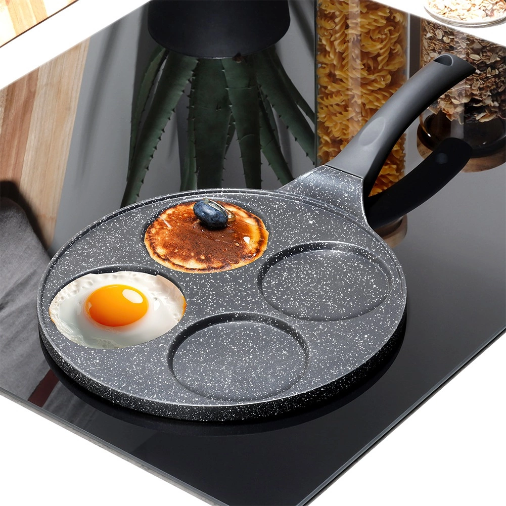 Četiri kružna otvora promjera 9 cm osiguravaju ravnomjerno oblikovana jaja, popečke i mini palačinke bez truda.