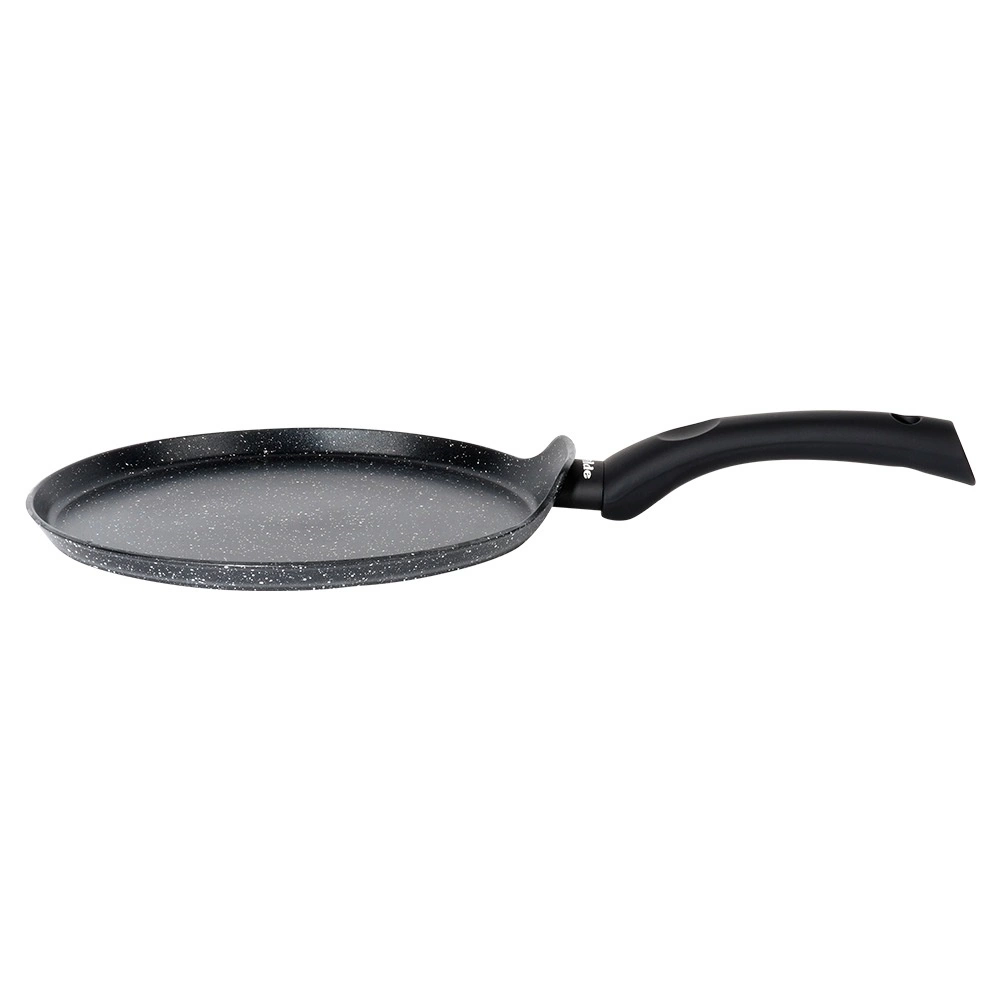 Tava je izrađena od izdržljivog aluminija za brz i ujednačen prijenos topline, što štedi vrijeme i energiju. Kompatibilna je sa svim vrstama ploča za kuhanje, uključujući indukciju, a zahvaljujući neprianjajućoj površini lako se čisti – može se prati i u perilici posuđa. Idealna za svakodnevnu pripremu palačinki, pita i omleta.