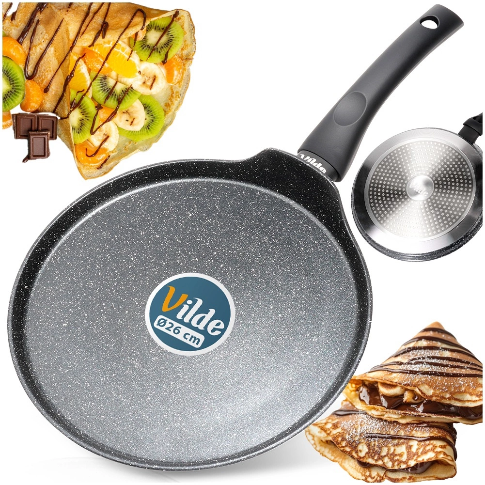 Pripremite savršeno tanke palačinke, američke palačinke i omlete zahvaljujući širokoj, ravnoj površini i niskom rubu koji olakšavaju ulijevanje tijesta, podizanje i okretanje. Granitni neprianjajući sloj u crnoj boji omogućuje kuhanje s malo masnoće i osigurava lako odvajanje jela od tave.